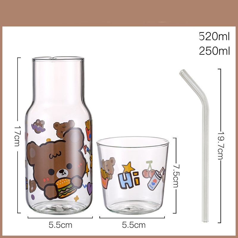 G: Burger bear cup pot + glass straw,