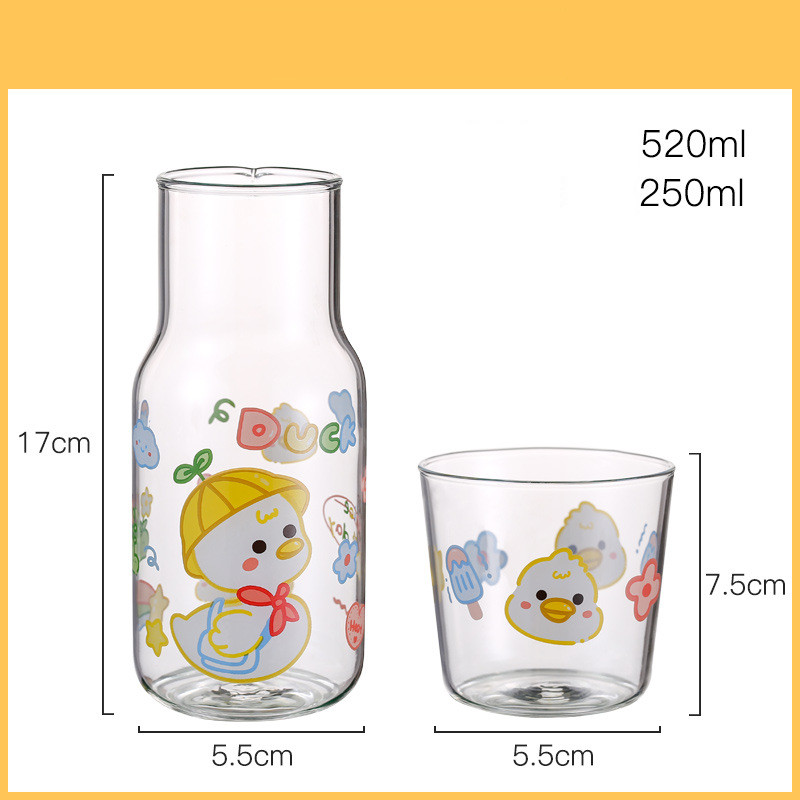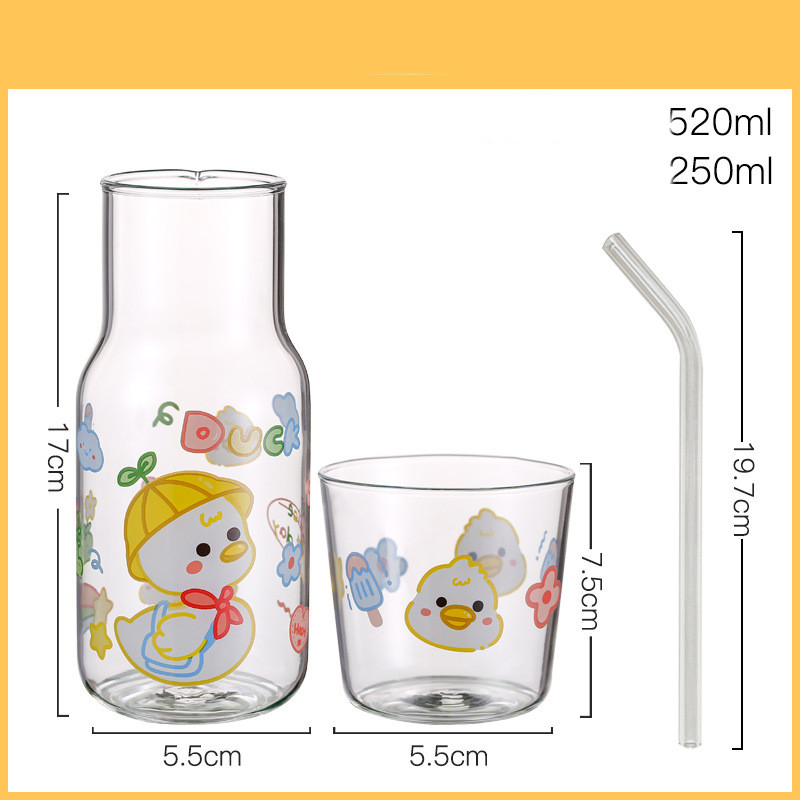 K: cure duck cup pot + glass straw,
