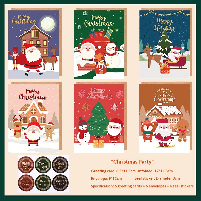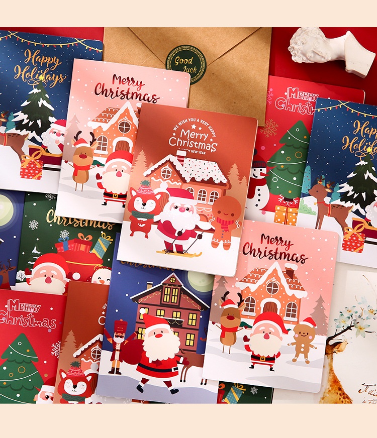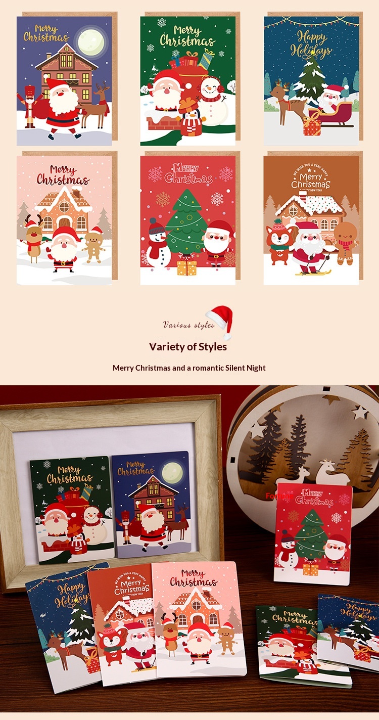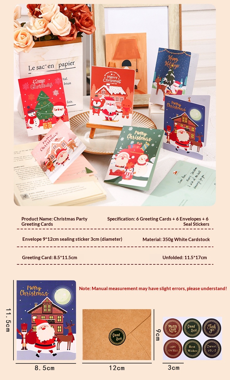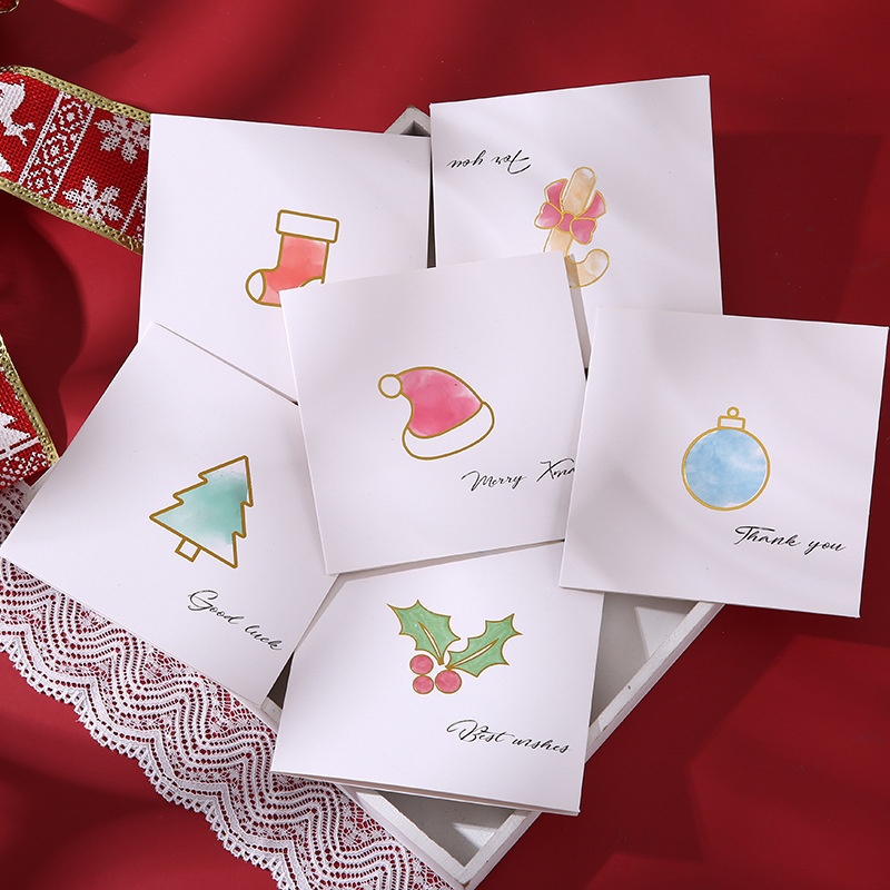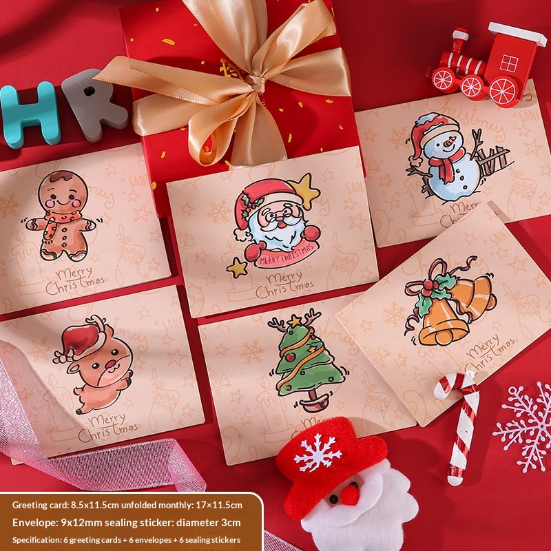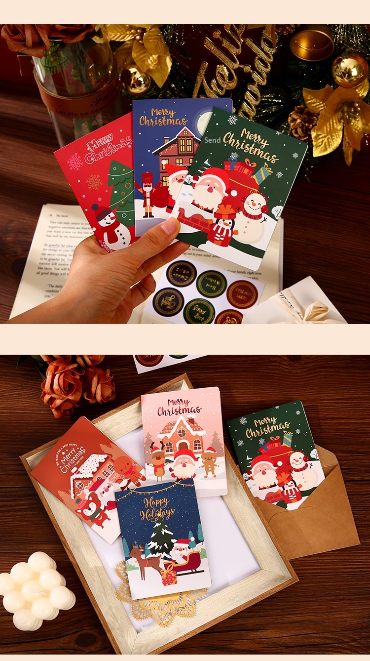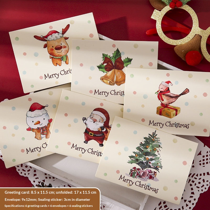 Style: Christmas party greeting card; red Christmas-themed greeting card—including envelope and sealing sticker; beige Christmas greeting card—including envelope and sticker; vintage-style Christmas greeting card—including envelope and sticker; "Old Man and Bear" greeting card—including envelope and sticker; crayon-drawn Christmas greeting card—including envelope and sticker; minimalist watercolor Christmas greeting card