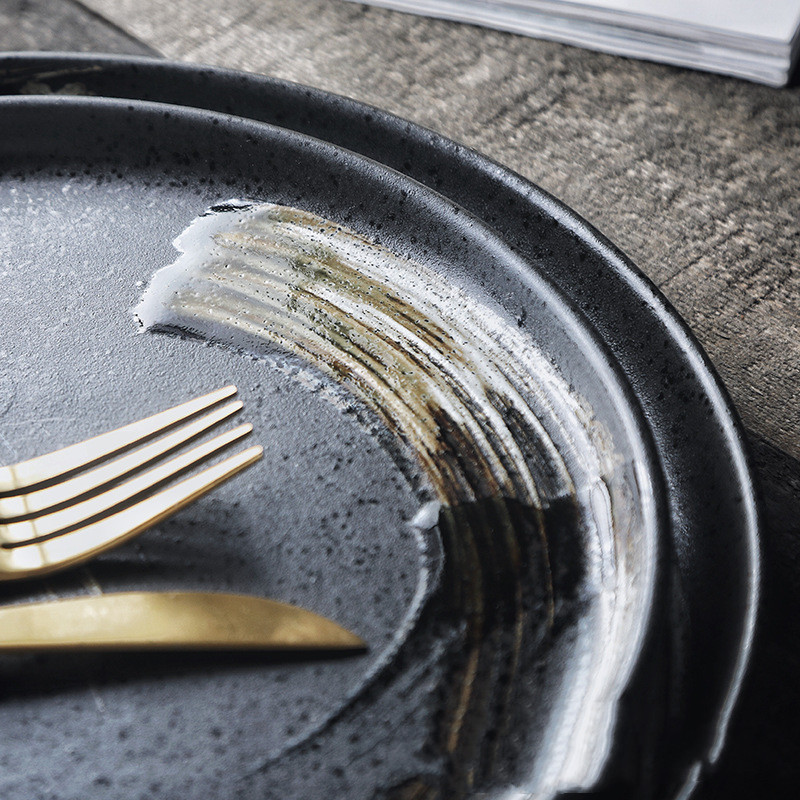 Japanese retro style, simple and casual nature, hand-painted patterns, distressed treatment, matte spray glaze technology, dark and dark