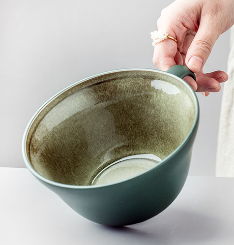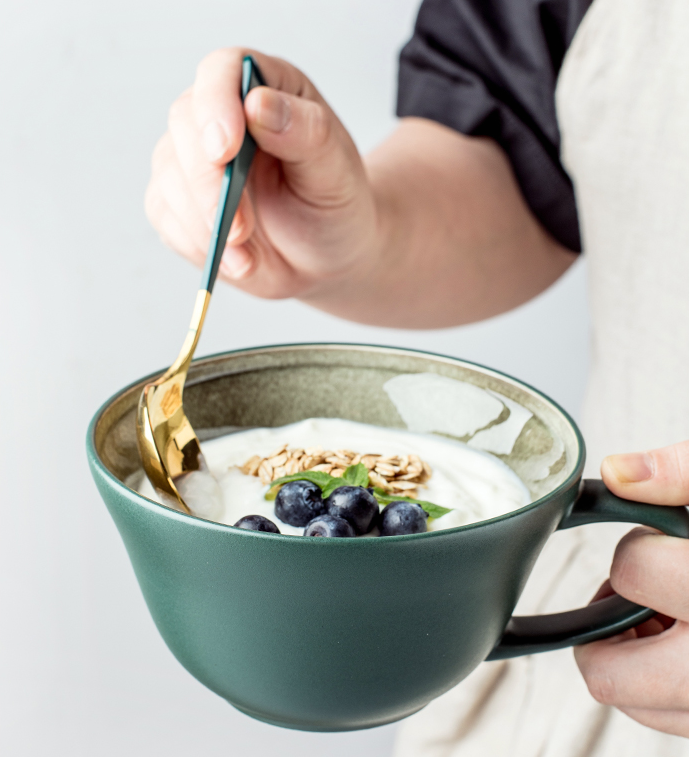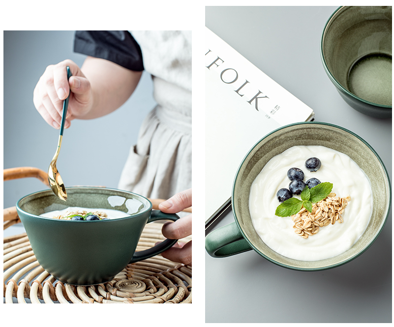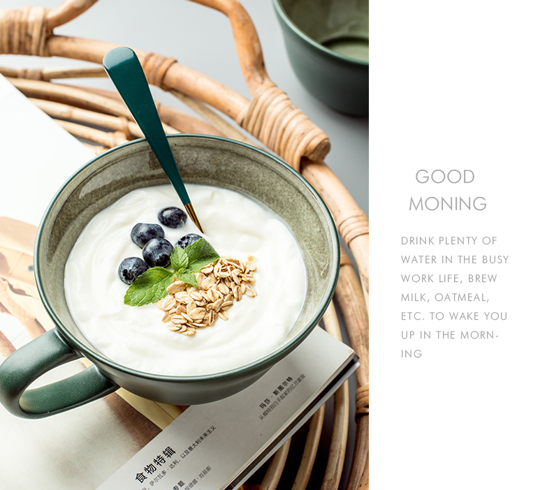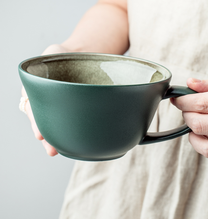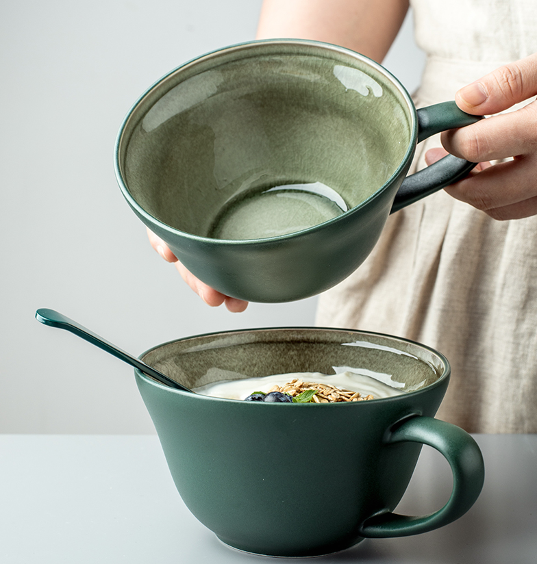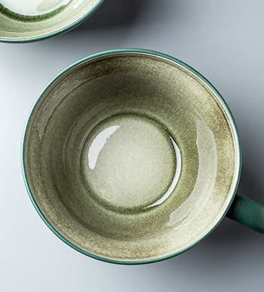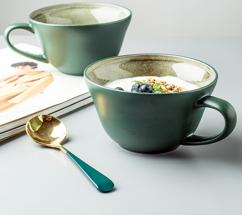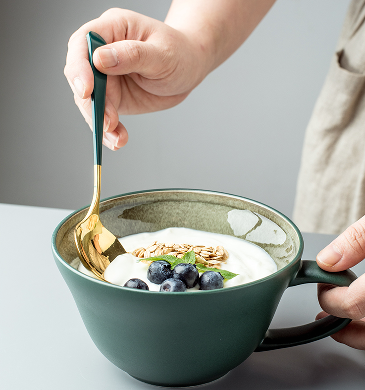 Color classification: Ice cracked glaze breakfast cup - dark green, ice cracked glaze breakfast cup - dark green + dark green golden spoon