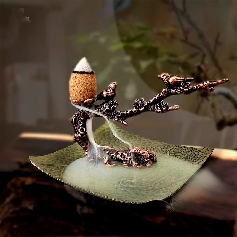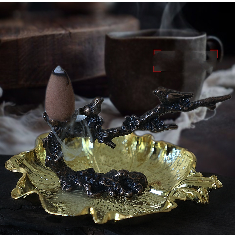 Specifications: a pair of fine branches, a golden frog Palm, a white tail, a bronze Iron European woodpecker, and a plum branch.