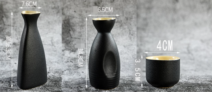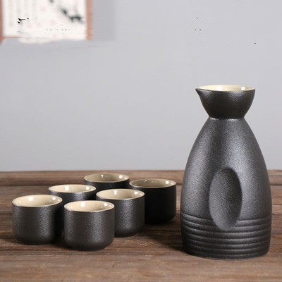 Style 8 black pottery sake 1 jug 6 cups half catty