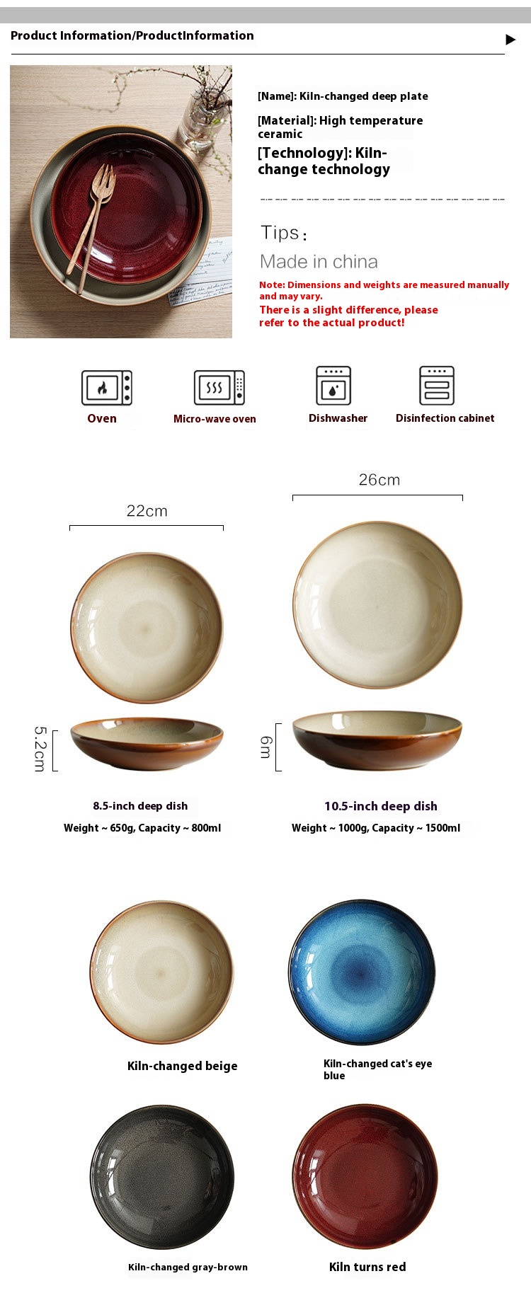 Color: scale color red-8.5 inches deep plates, scale color gray-8.5 inches deep plates, cat eye blue-8.5 inches deep plates, Bangkok Brown-8.5 inches deep plates, scale color red-10.5 inches deep plates, scale color gray-10.5 inches deep plates, cat's eye blue-10.5 inches deep plates, Bangkok Brown-10.5 inches deep plates