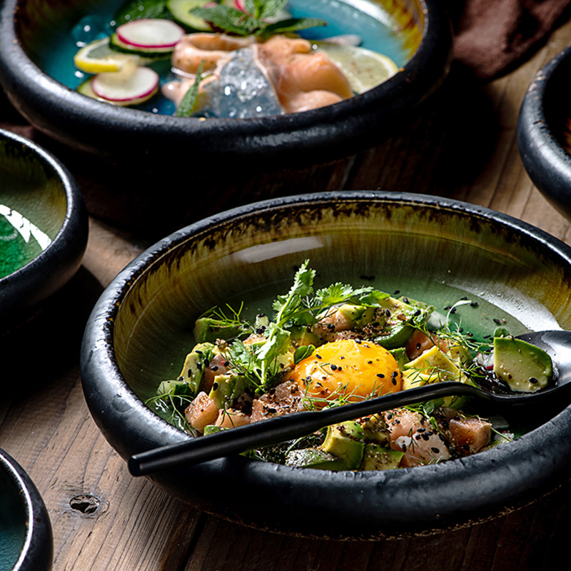 Ice cracked glaze bowl: kiln-turned gemstone texture, magnolia and natural touch. Mottled and dreamy flowing glaze texture