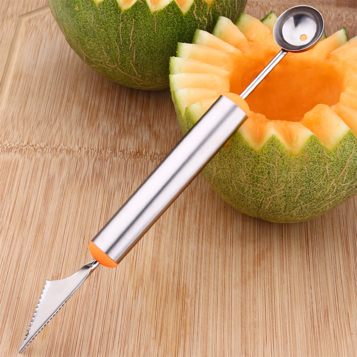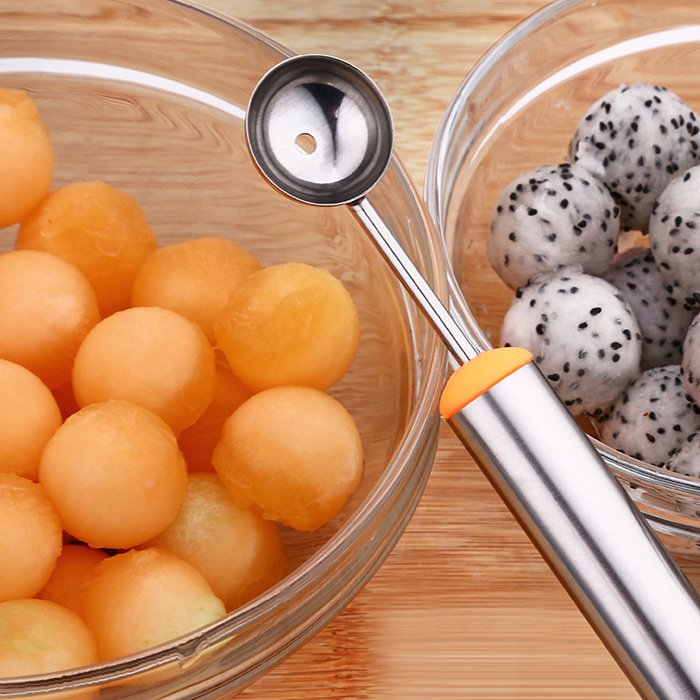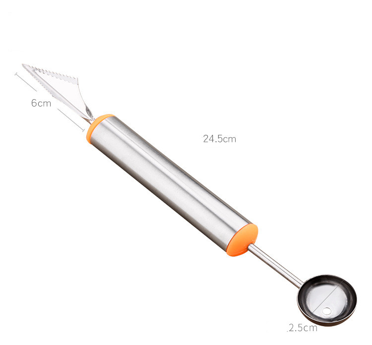 Material: Stainless steelSize: Length 24.5cm, blade length 6cm, spoon diameter: 2.5cmColor: Steel