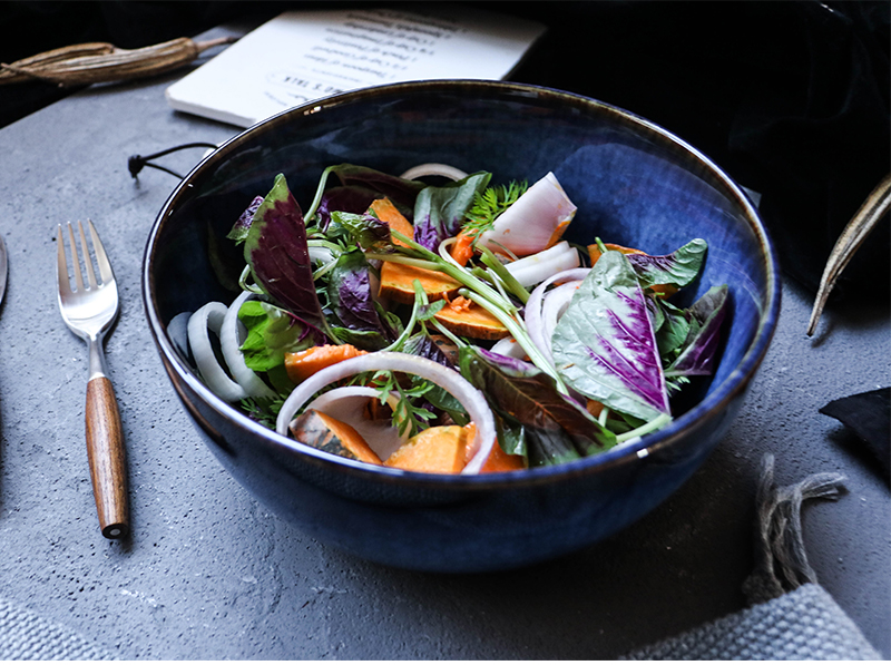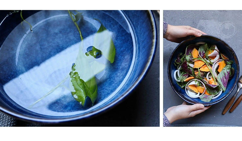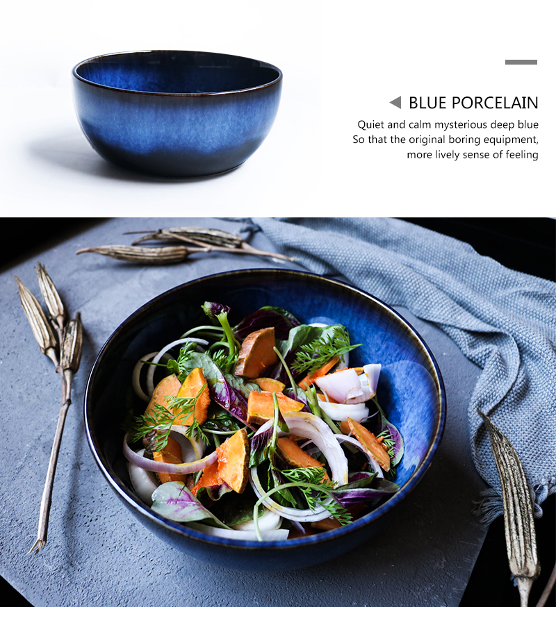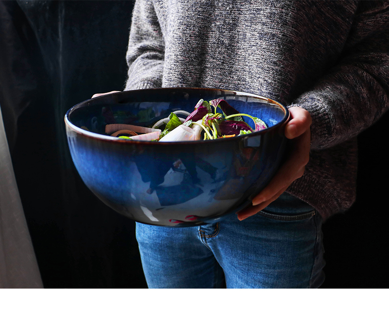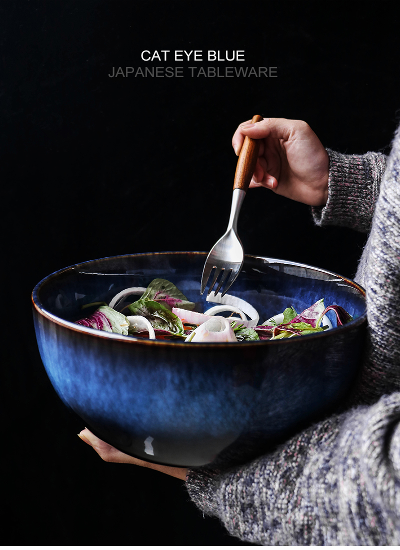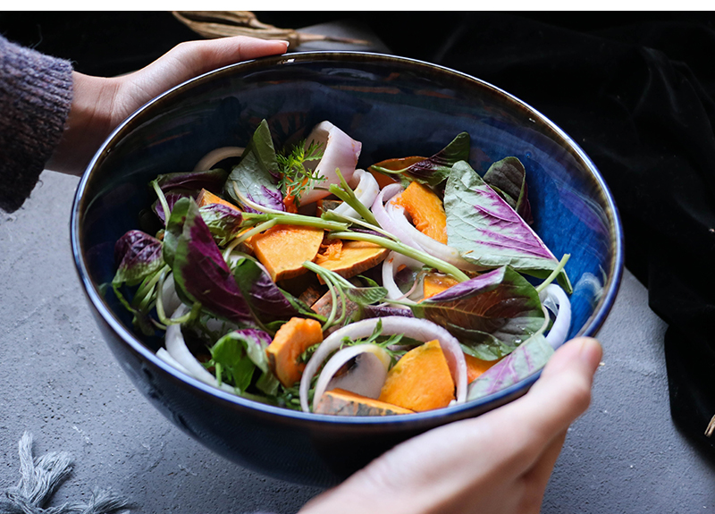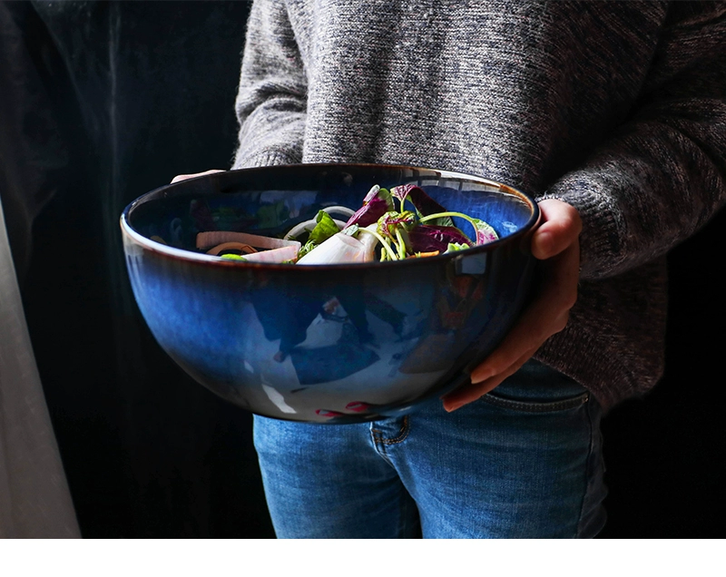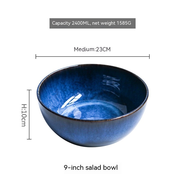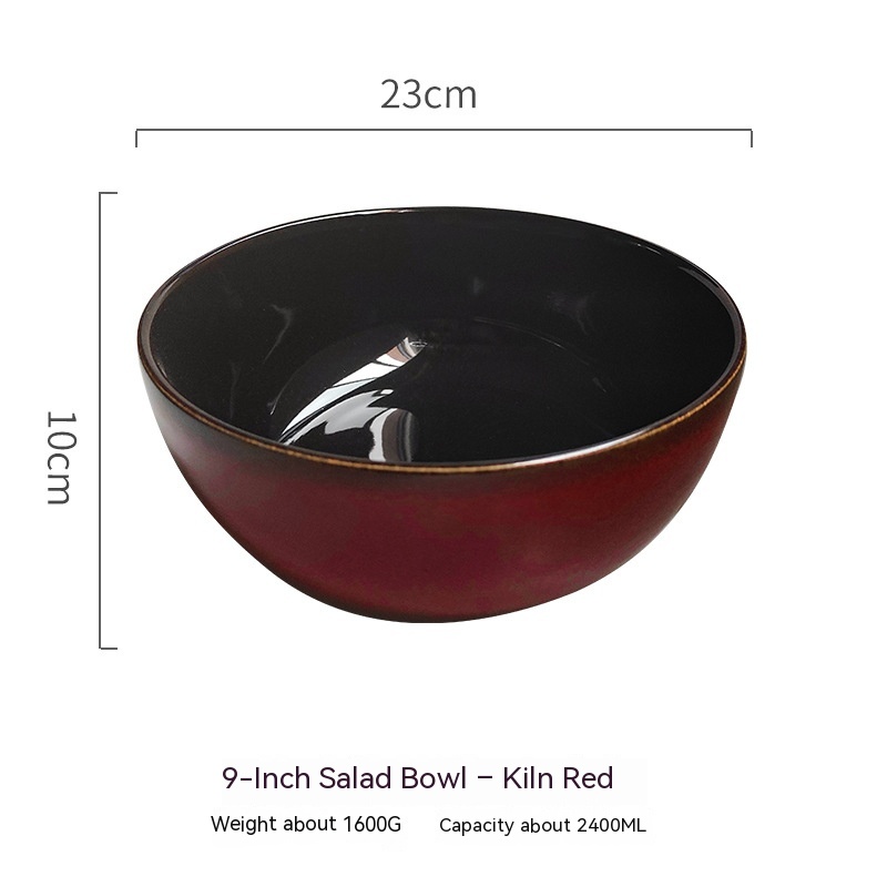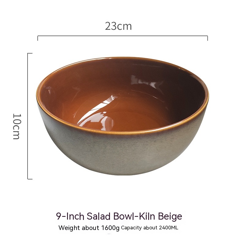 Color: 9-inch salad bowl-Cat's Eye Blue, 9-inch salad bowl-Kiln baked beige, 9-inch salad bowl-Kiln baked brown gray, 9-inch salad bowl-Kiln baked red