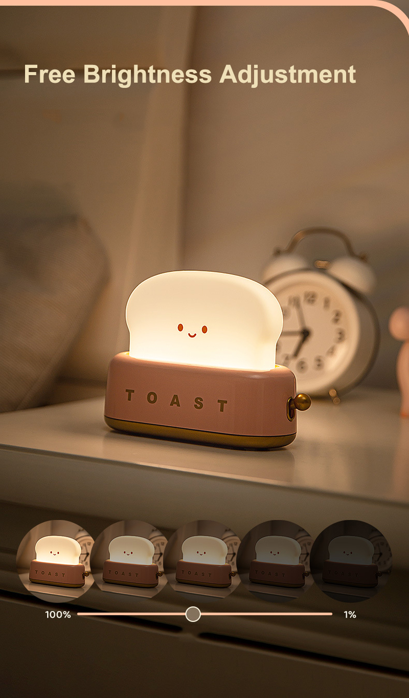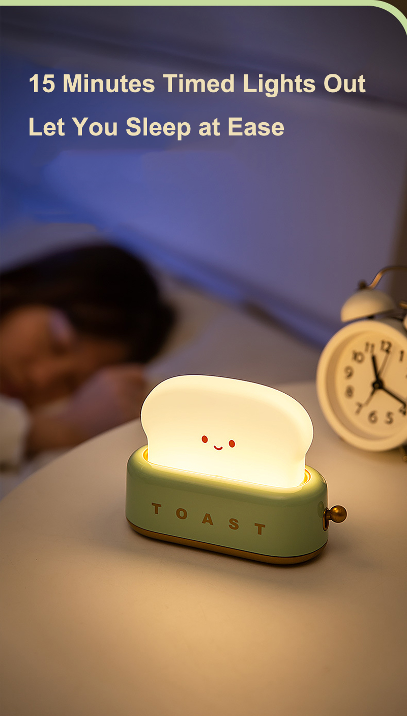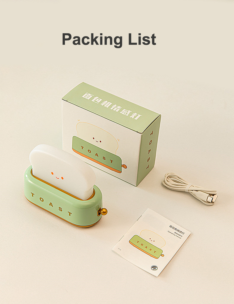 【CUTE TOAST LAMP】Unique design lovely table light Shaped like toaster features a retro style and high-grade quality. Its gentle LED glow and kind smiling face make it a great night light for little ones. This cute gadget can be used as a small night light or an atmosphere light and has different magical effects in different scenes.