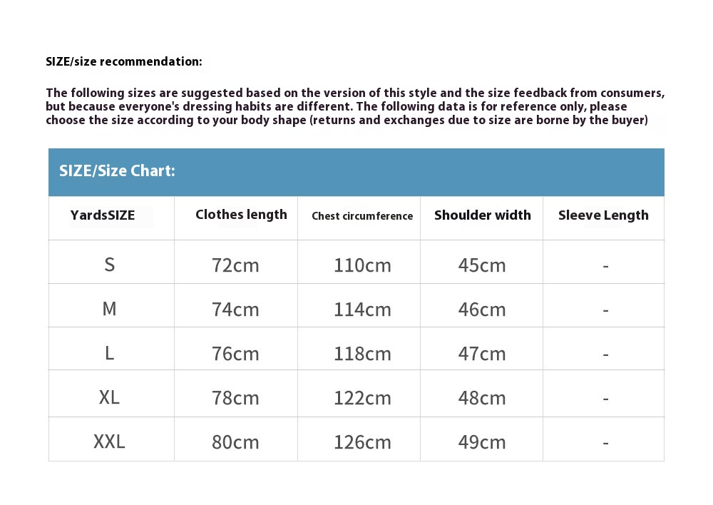 Note: 1. Asian sizes are 1 to 2 sizes smaller than European and American people. Choose the larger size if your size between two sizes. Please allow 2-3cm differences due to manual measurement. 2. Please check the size chart carefully before you buy the item, if you don't know how to choose size, please contact our customer service. 3.As you know, the different computers display colors differently, the color of the actual item may vary slightly from the following images.