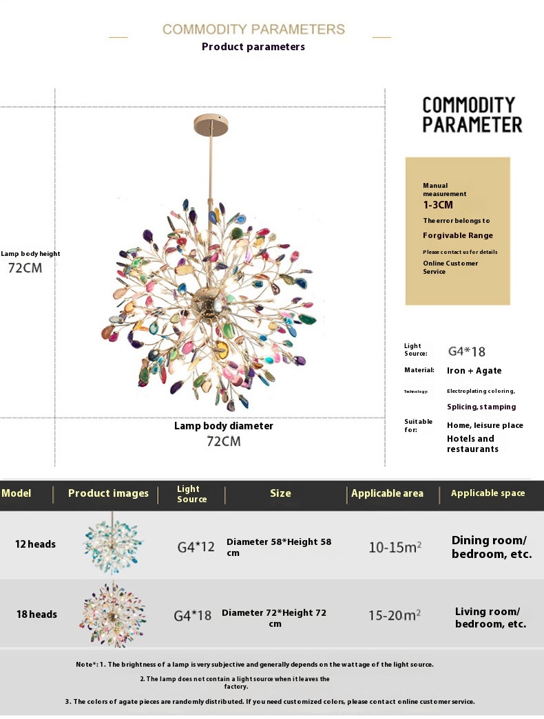 Light color: 12 heads 58CM blue agate, 18 heads 72CM color, 24 heads 100CM color