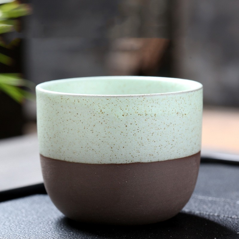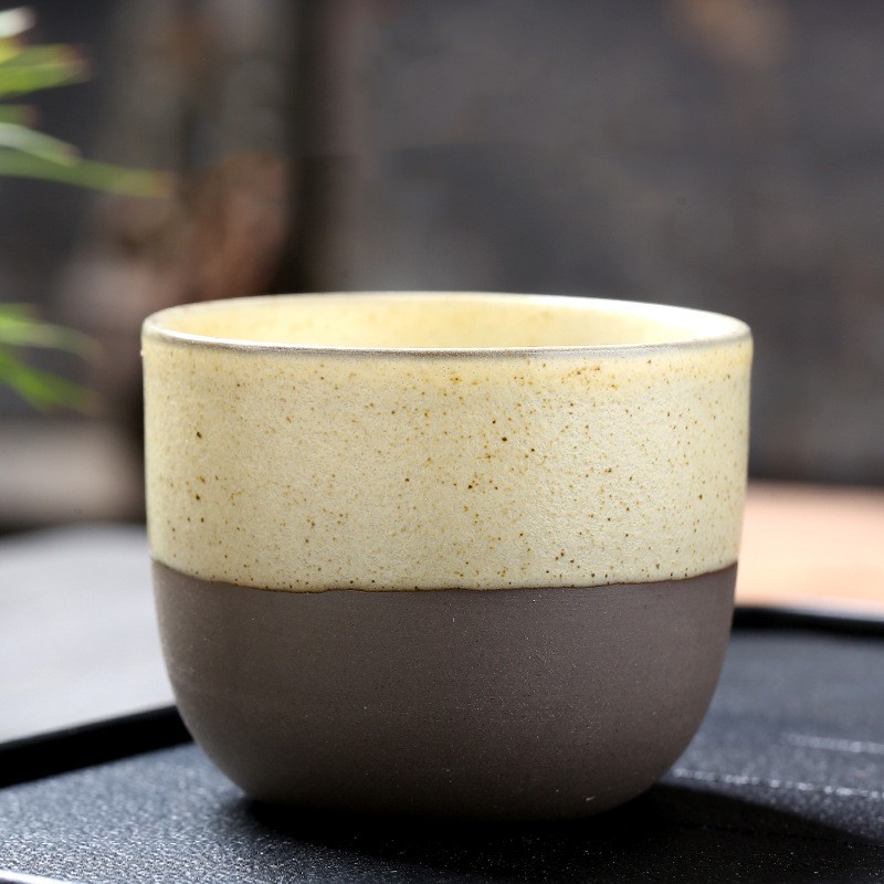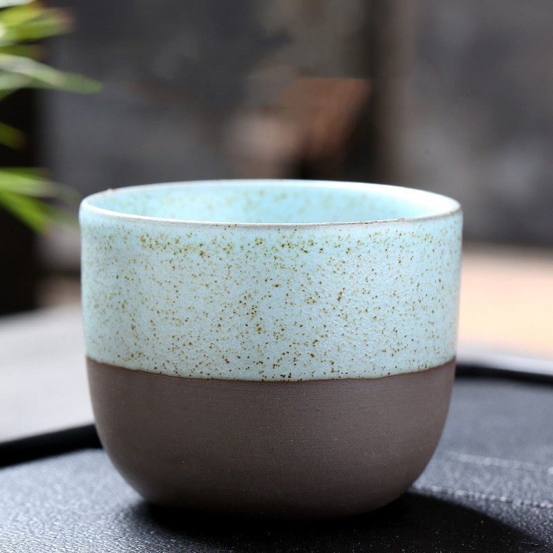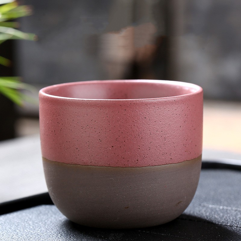 Color: black rough pottery semi-glazed cup-white, pink, red, yellow, blue, and cyan.