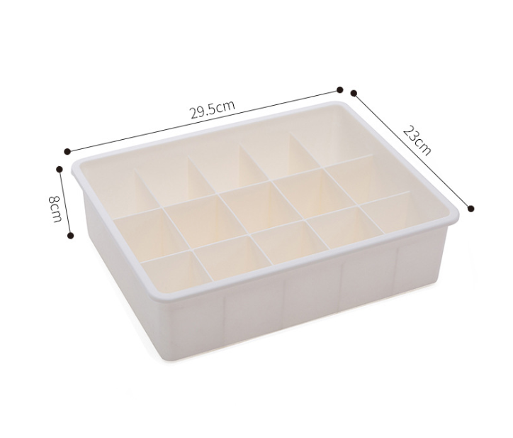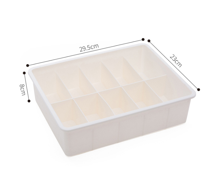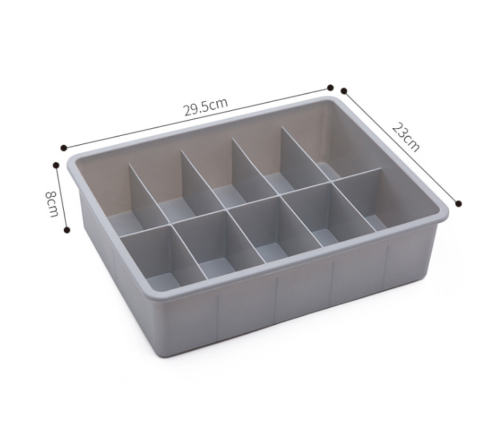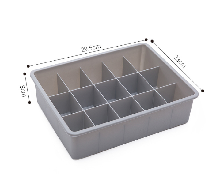 Product Category Underwear Storage Box Model AF012 Material Plastic Material PP Plastic new materials accounted for 60% - 80% of new materials, commodity characteristics, cover function, finishing Storage scene Bedroom, laundry room Scope underwear, socks, bra style creative Pattern solid color capacity 2L specification medium Color Beige with cover without grid, gray with cover without grid, beige with cover ten grid, gray with cover ten grid, beige with lid fifteen grid, gray with lid fifteen grid