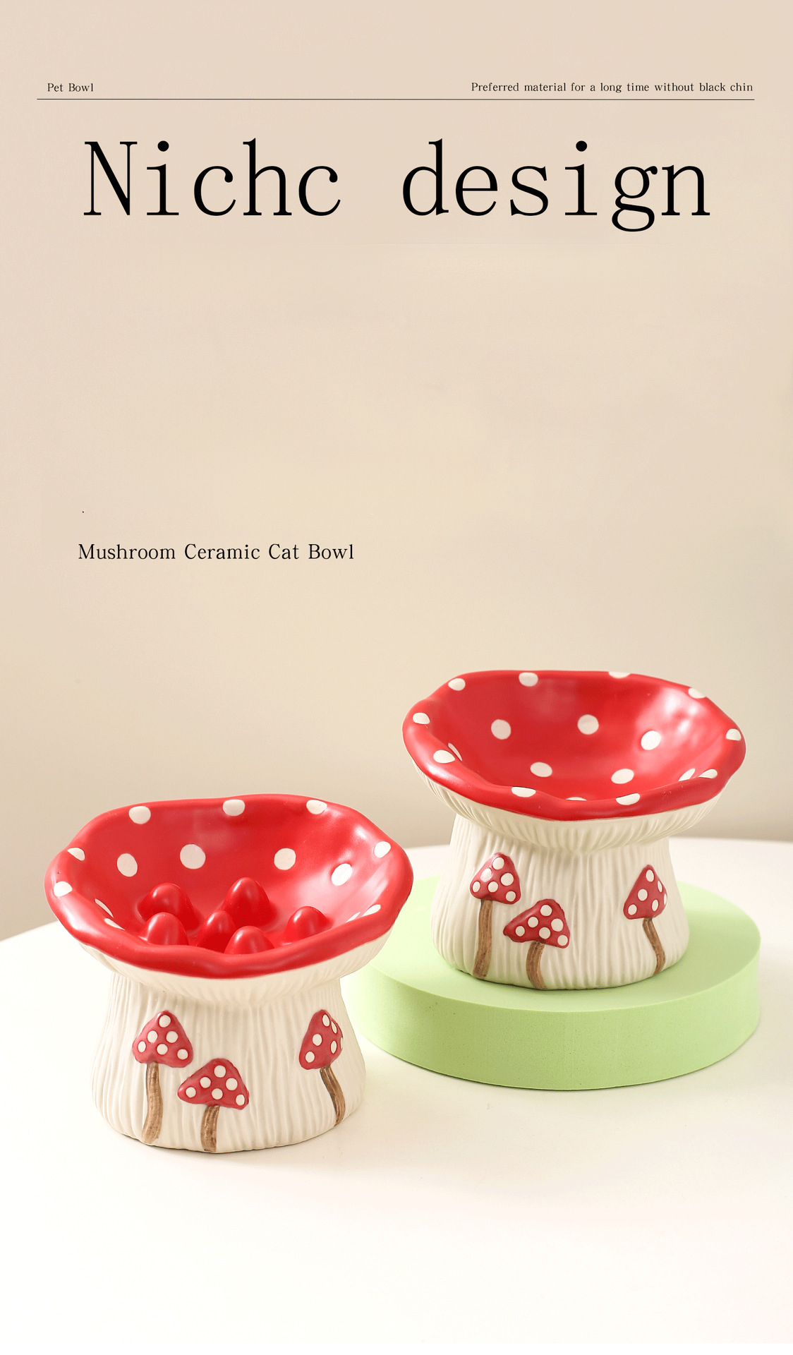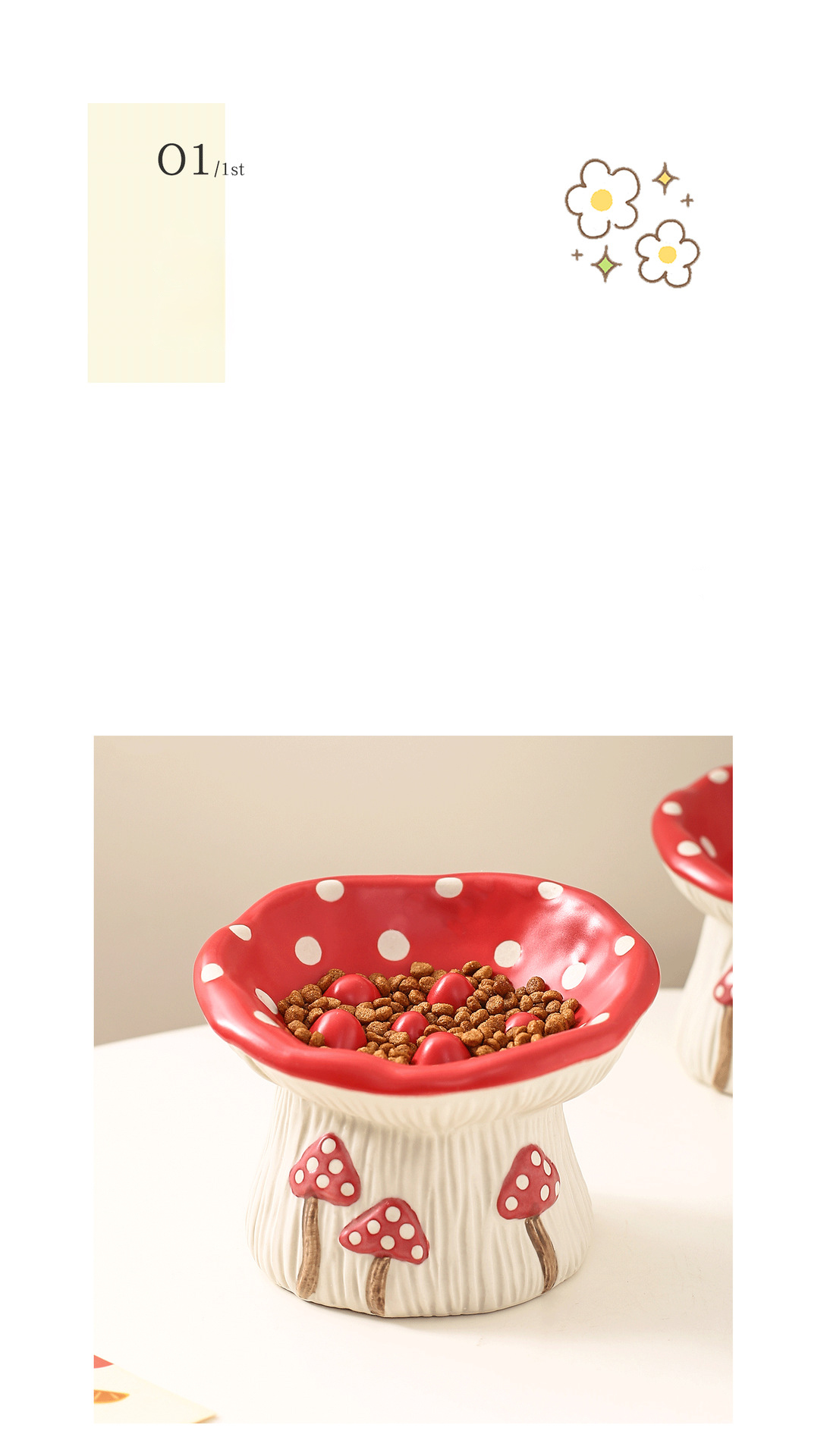 Creative Mushroom Modeling Tall Pet Bowl Cute Cat Bowl Dog Bowl Household Cat Dog Food Basin Drinking Water Bowl Cat Rice Bowl