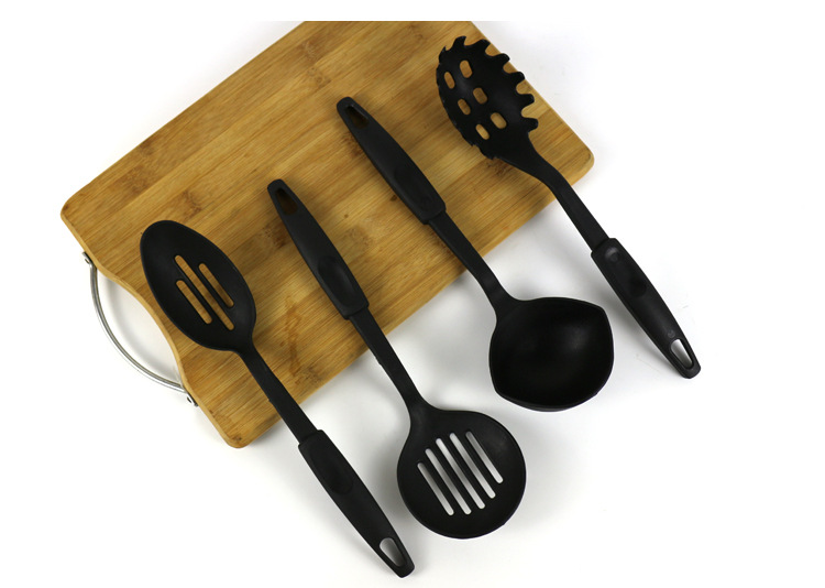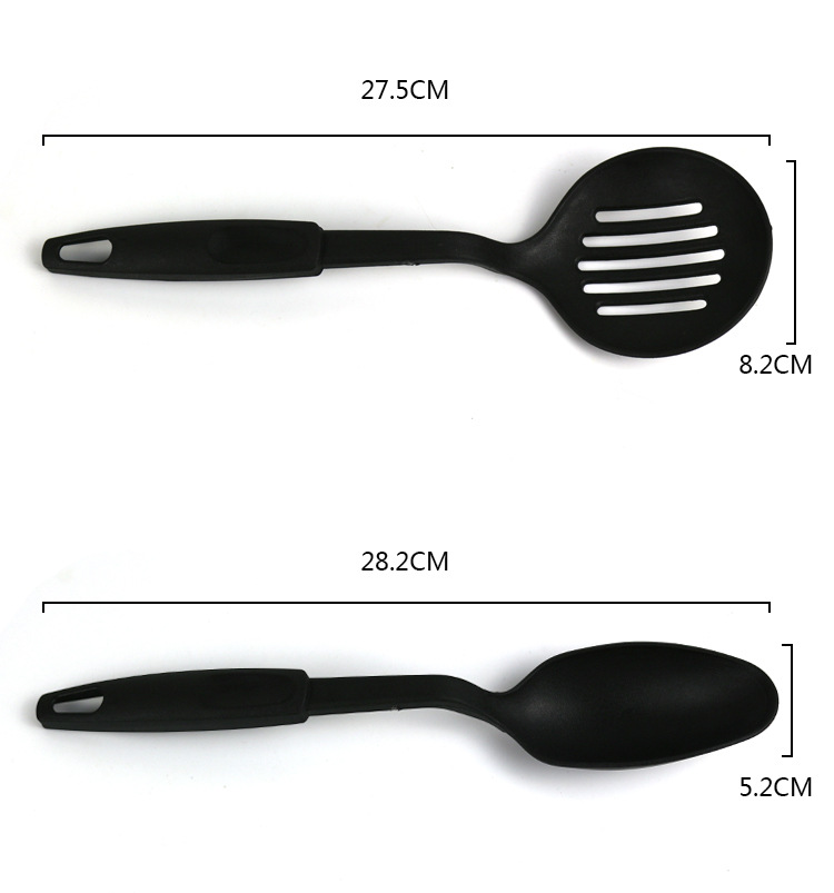 Product information:Material: rubber and plasticSize: Black Cooking Spoon & Spatula Set of Six *Size 225*Whether to import: no