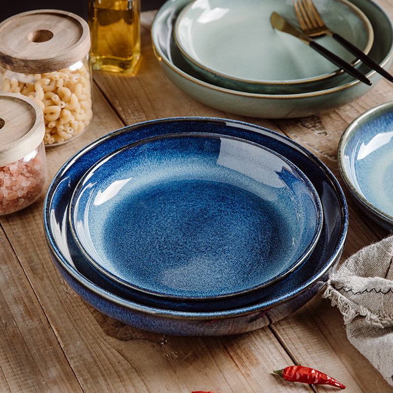 Color: blue_kiln to 8-inch deep soup plate, blue_kiln to 10-inch deep soup plate, rock blue (light blue)_kiln to 8-inch deep soup plate, rock blue (light blue)_kiln to 10-inch deep soup plate, Grass green _ kiln becomes 8 inch deep soup plate, grass green _ kiln becomes 10 inch deep soup plate