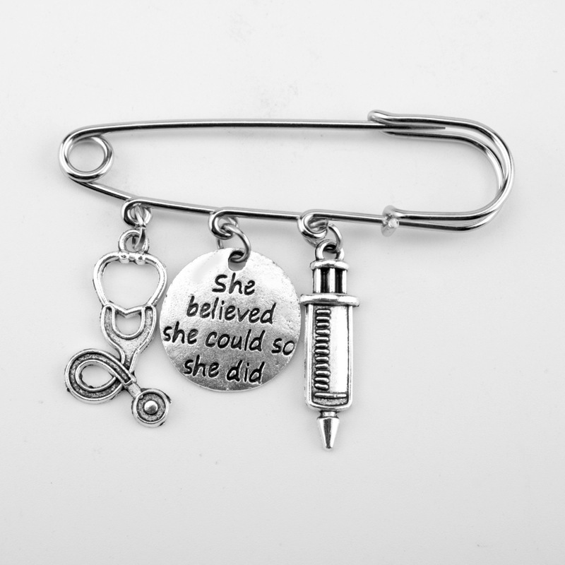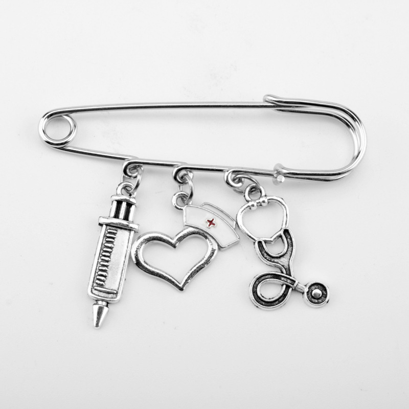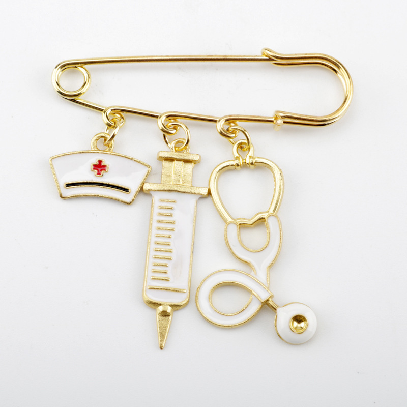 Creative Personality Syringe Syringe Nurse Hat Stethoscope Pin Brooch