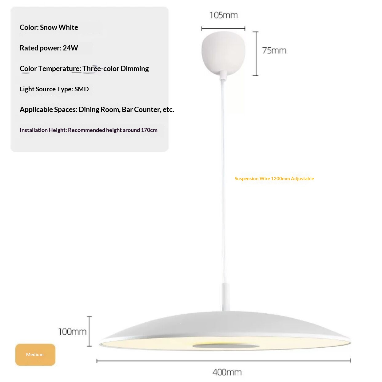 Suitable spaces: Living room, dining room