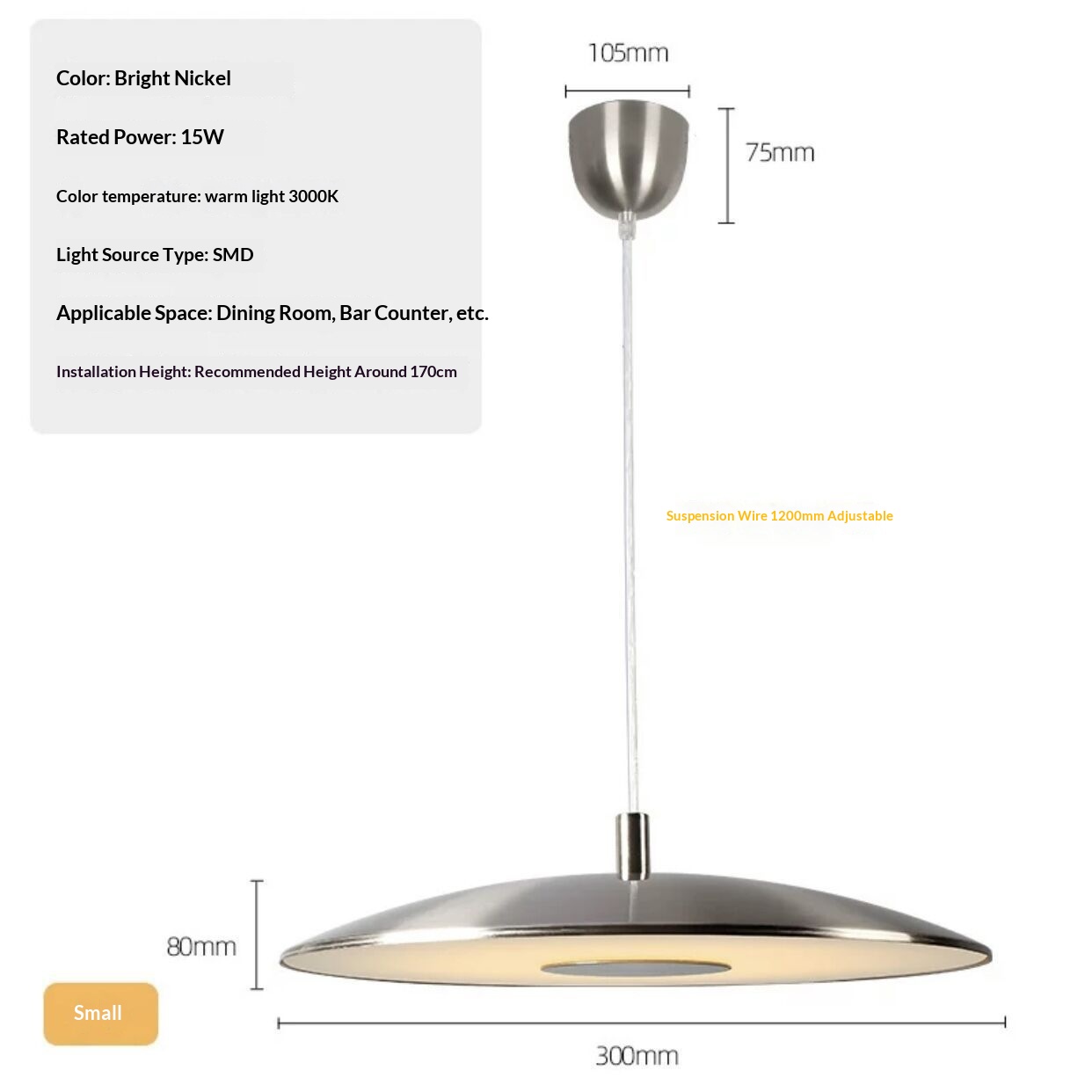 Light color options: Nickel 30 cm, Nickel 40 cm, Nickel 50 cm, White 30 cm, White 40 cm, White 50 cm