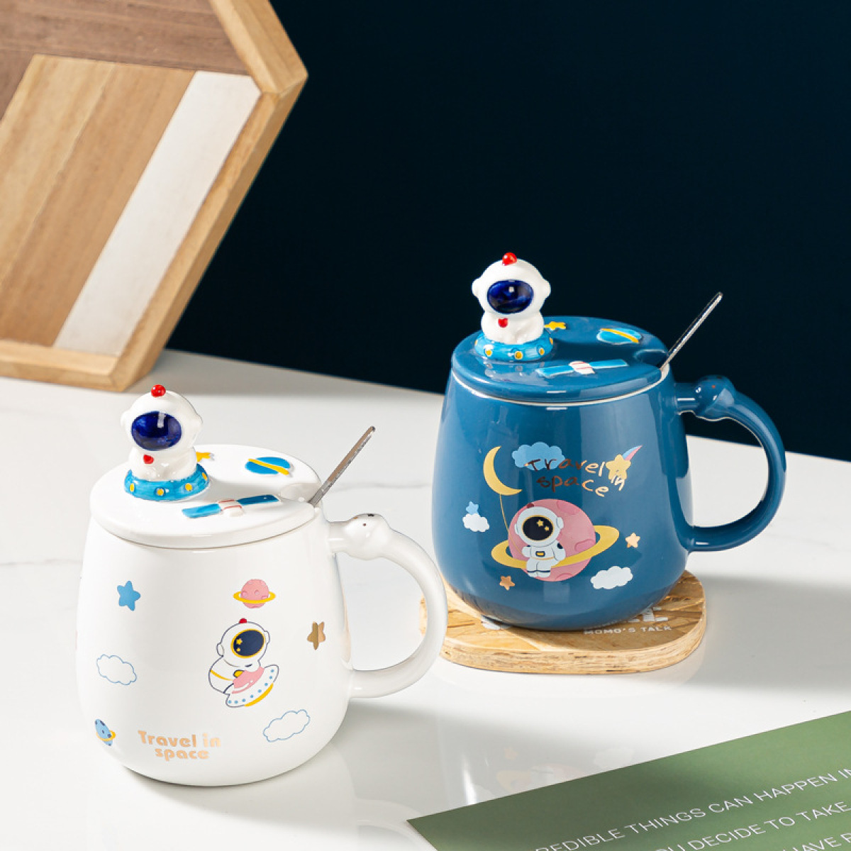 Set: one cup, one cover and one spoon