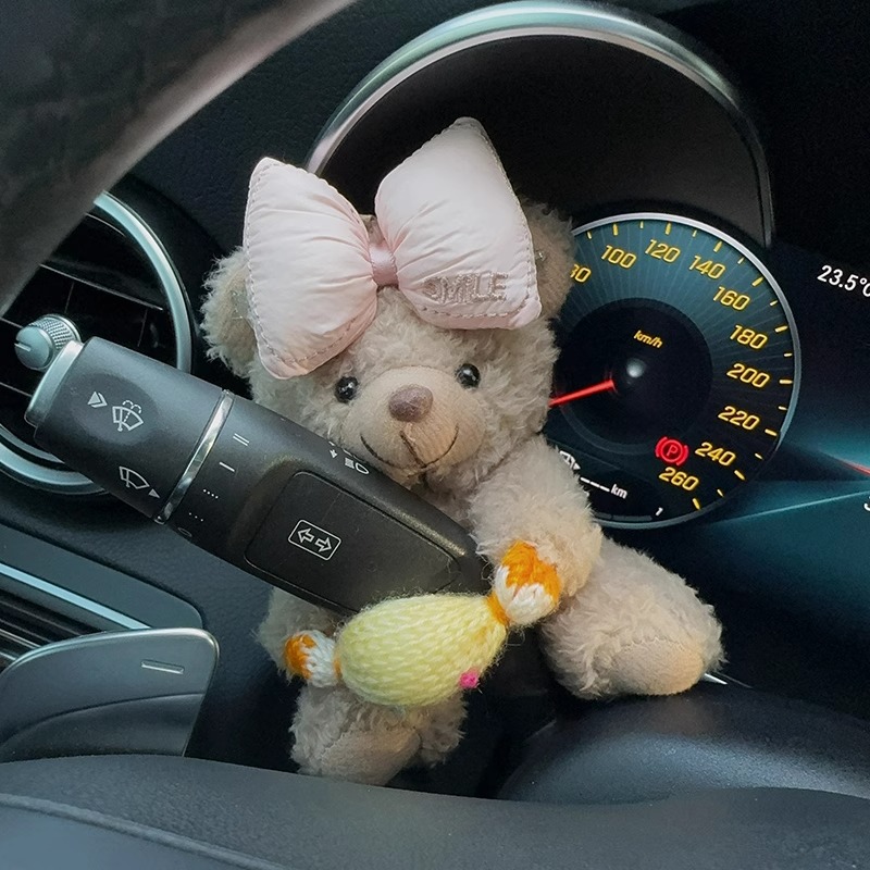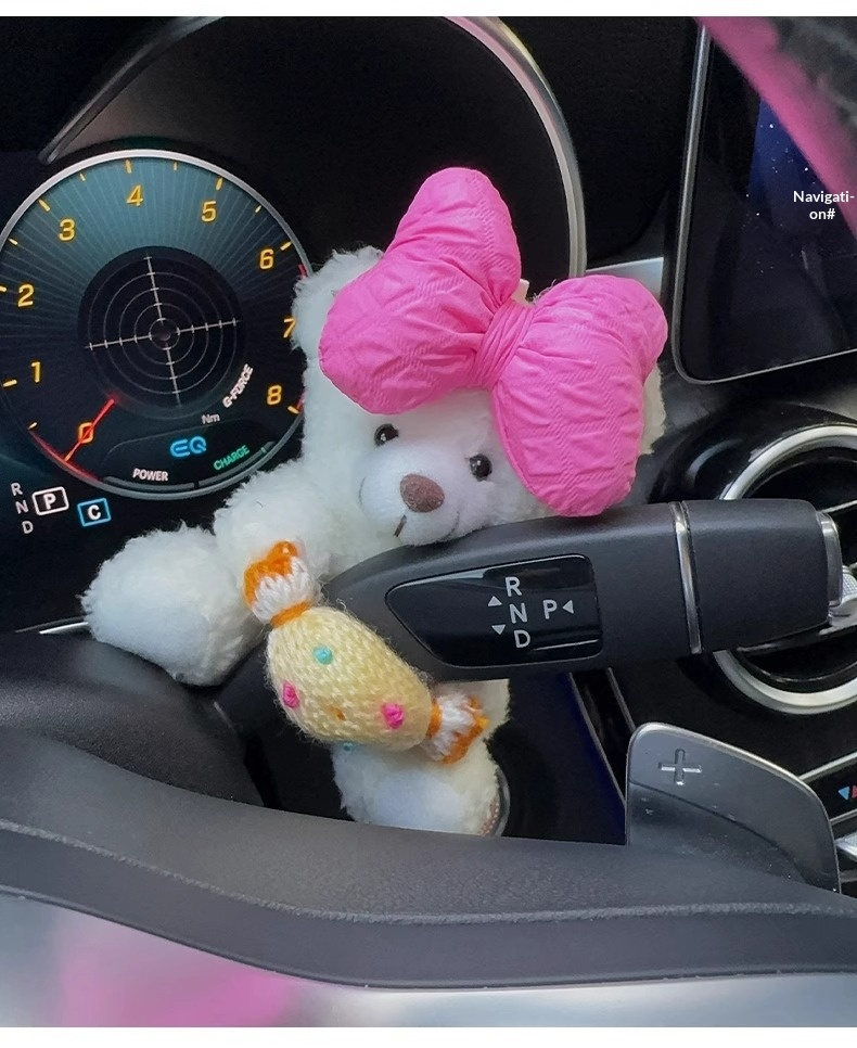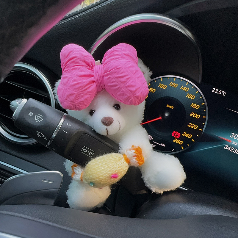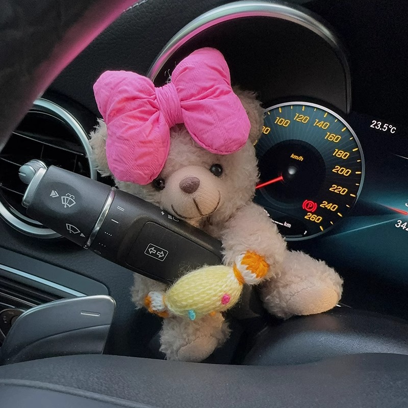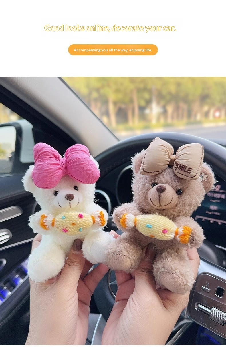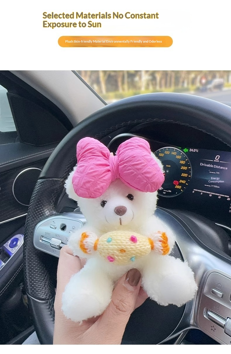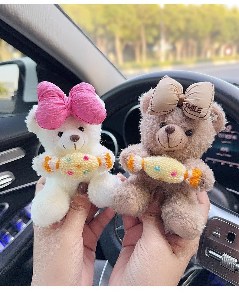 Colors: Rose-red bow with white bear, beige letter bow with white bear, brown bear with eyes, black bow with brown bear