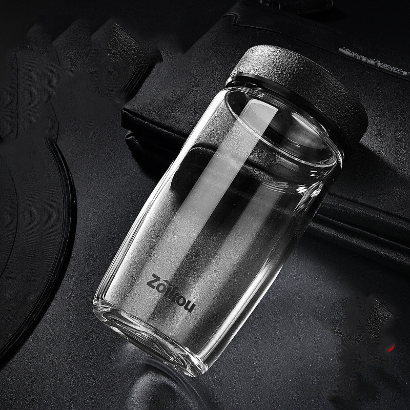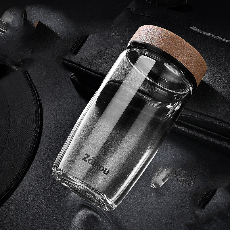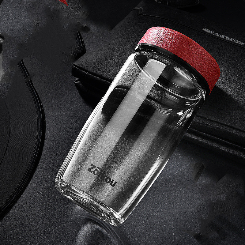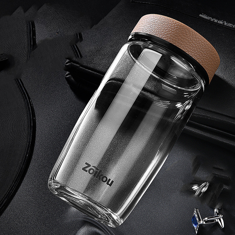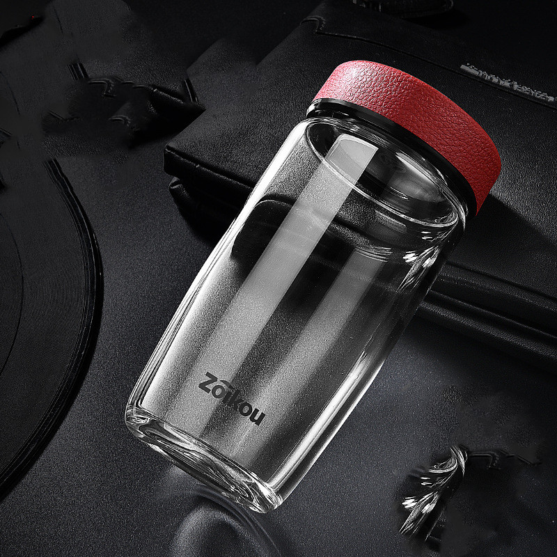 Creative portable double glass advertising cup transparent tea separation cup gift cup customized LOGO printing