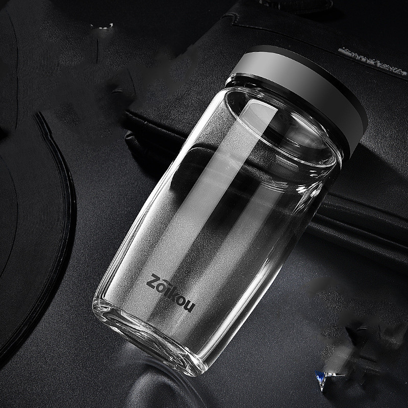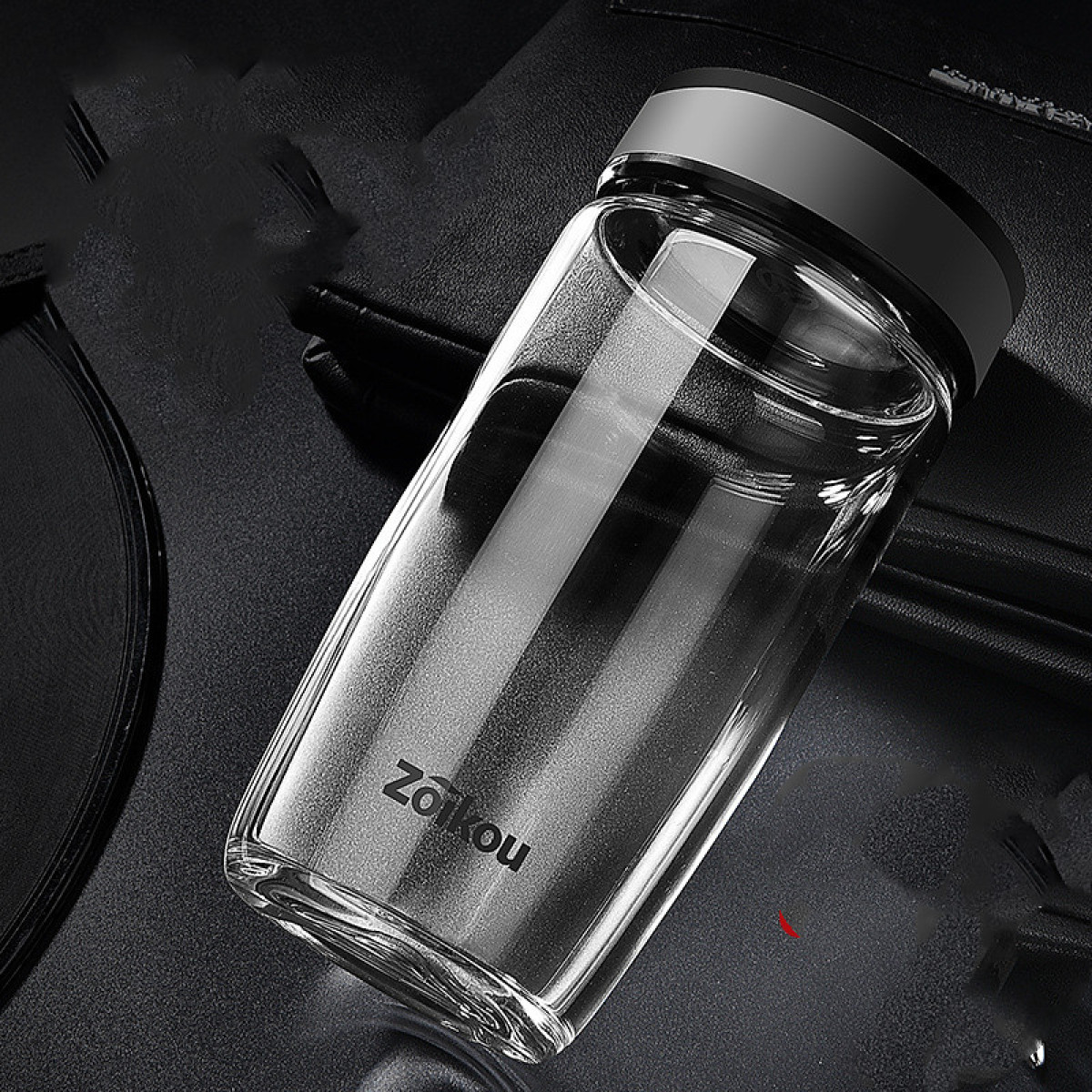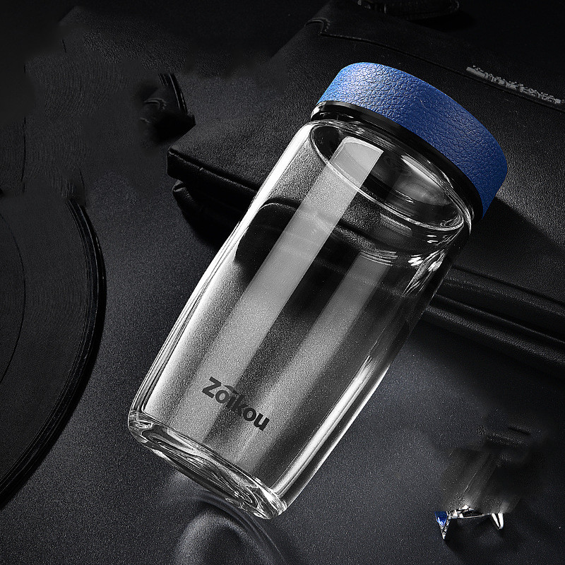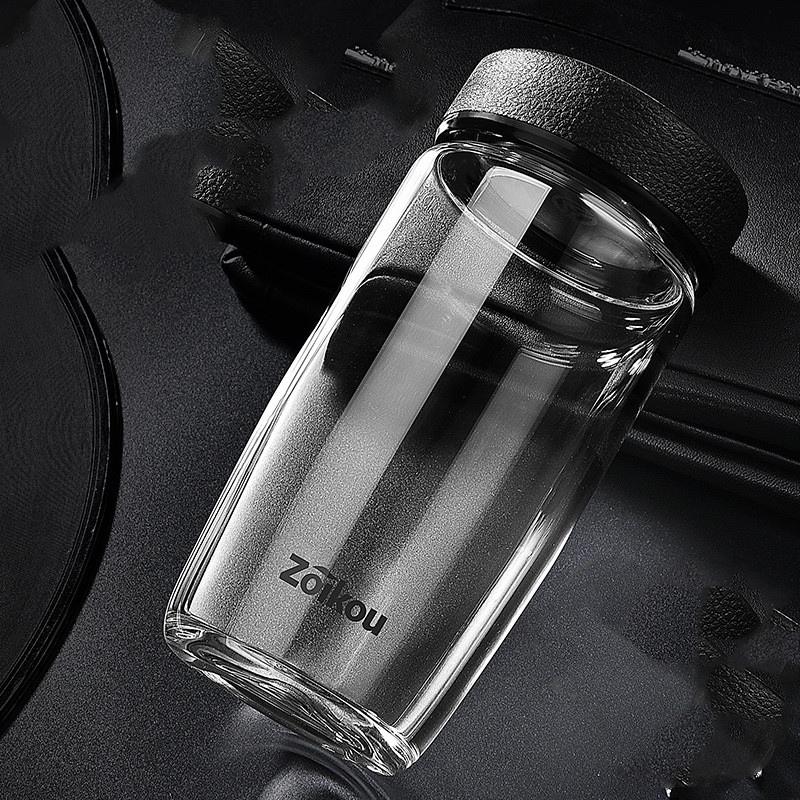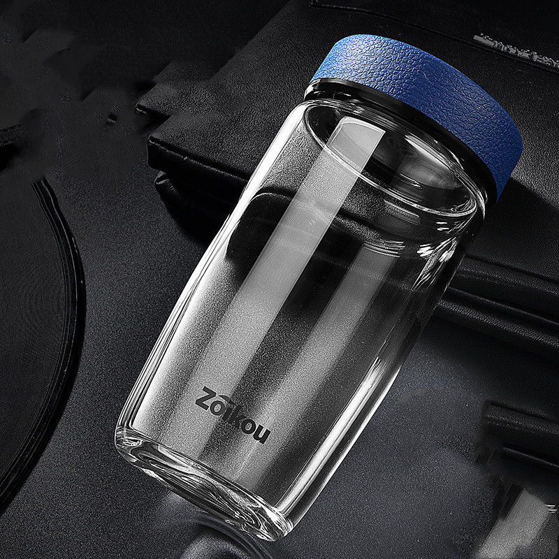 Creative portable double glass advertising cup transparent tea separation cup gift cup customized LOGO printing