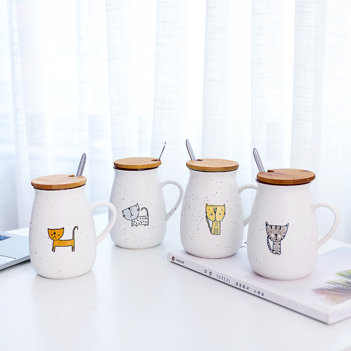 Creative Pot-bellied Ceramic Mug For Cats With Baby's Breath