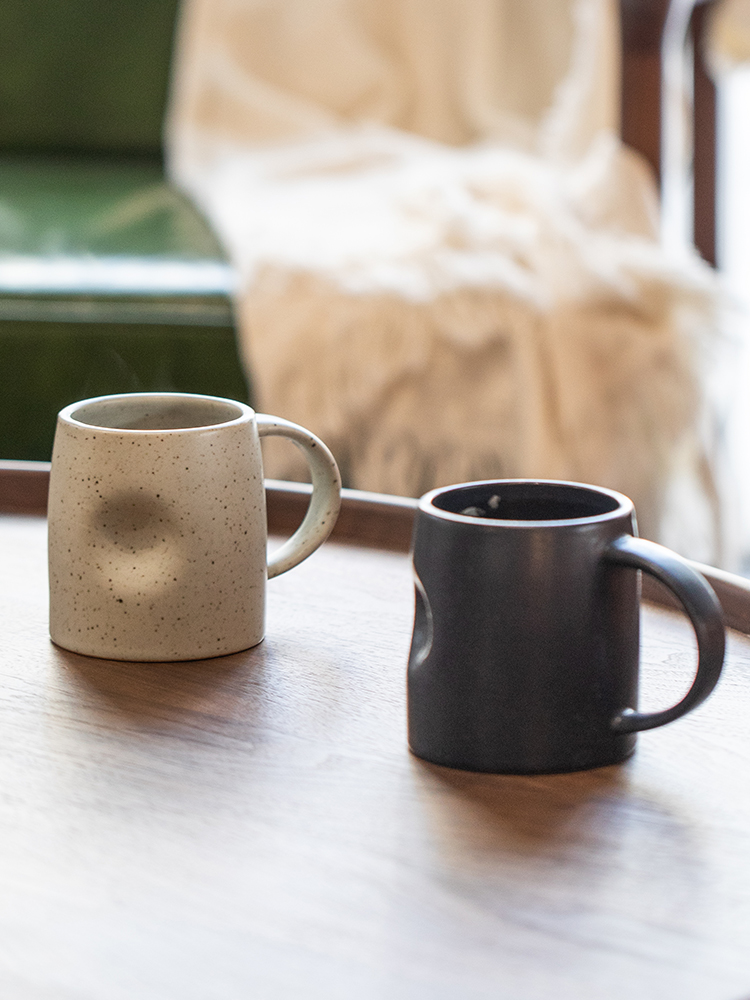 Color classification: antique blue big-bellied mug, beige plus a little big-bellied mug