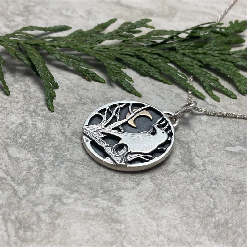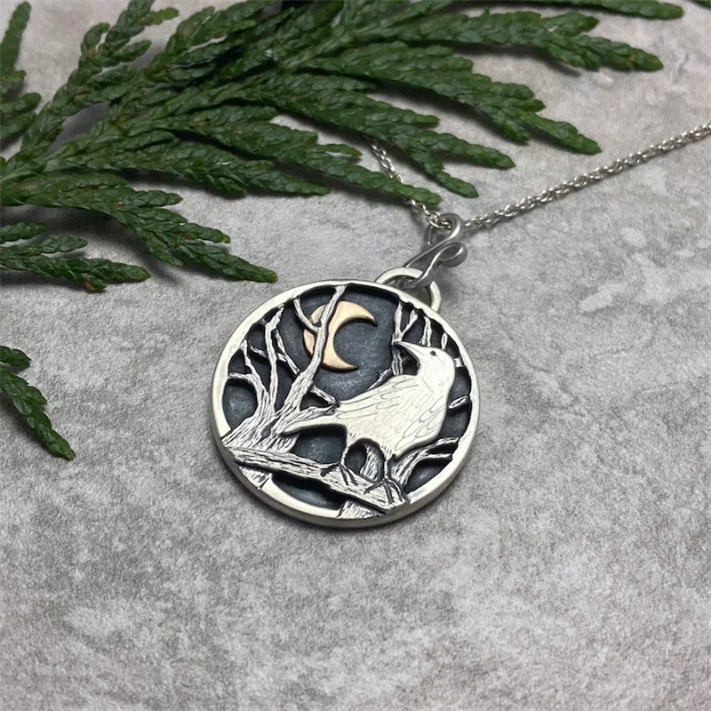 Creative Retro Crow Moon Forest Delicate Pendant Necklace Women