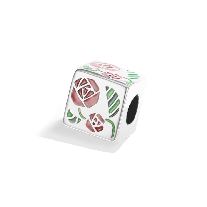 Creative Simple Square Rose Beads Fashion Girls Bracelet DIY Accessories Loose Beads 925 Sterling Silver