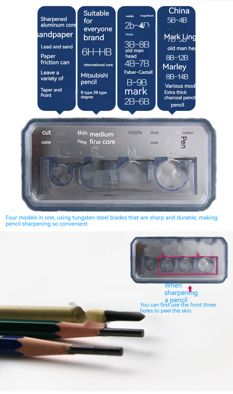 Color: four holes pencil sharpener, 4 blades plus screwdriver