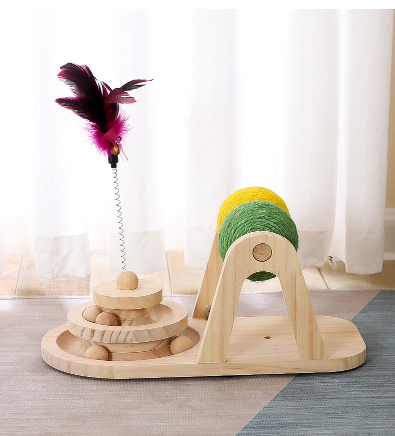 Material: solid woodApplication: catColor: double ball turntable cat toySize: 35*20.8*17CM