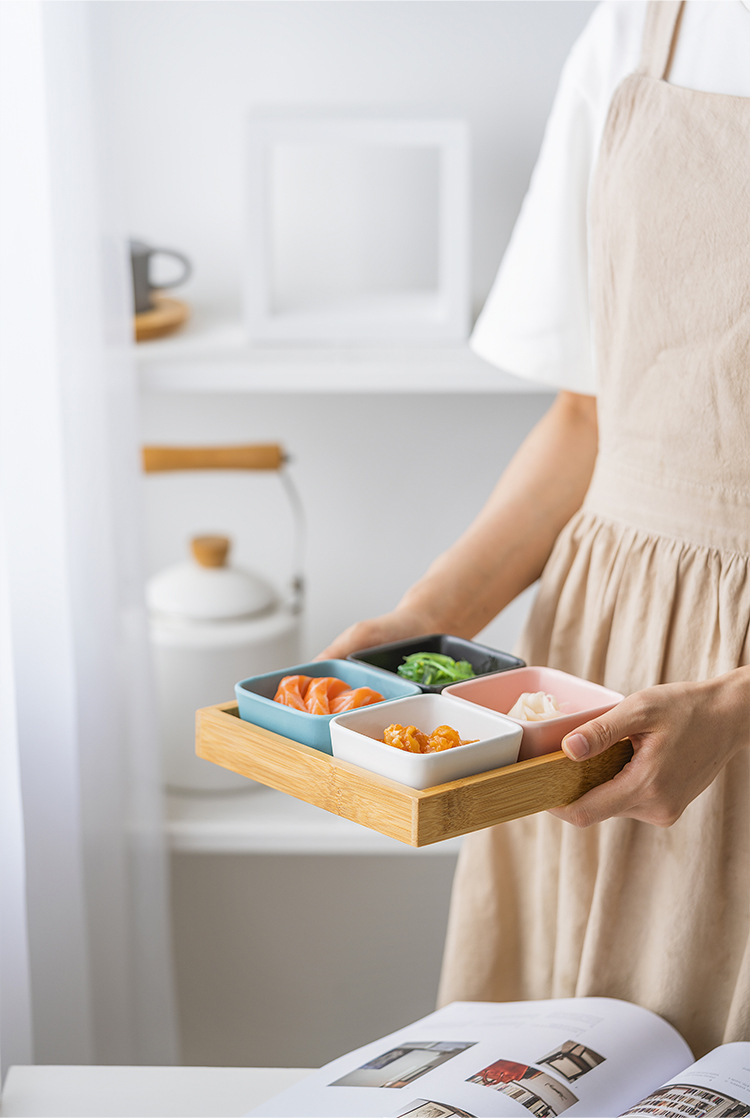 Color: Blue, Black, White, Pink, Dark Green, 2 Bamboo Tray, 3 Bamboo Tray, 4 Bamboo Tray, 6 Bamboo Tray, round Dot Red, Dot Pink, Dot Yellow, Dot Beige, dot Green, Dot Blue, Yellow