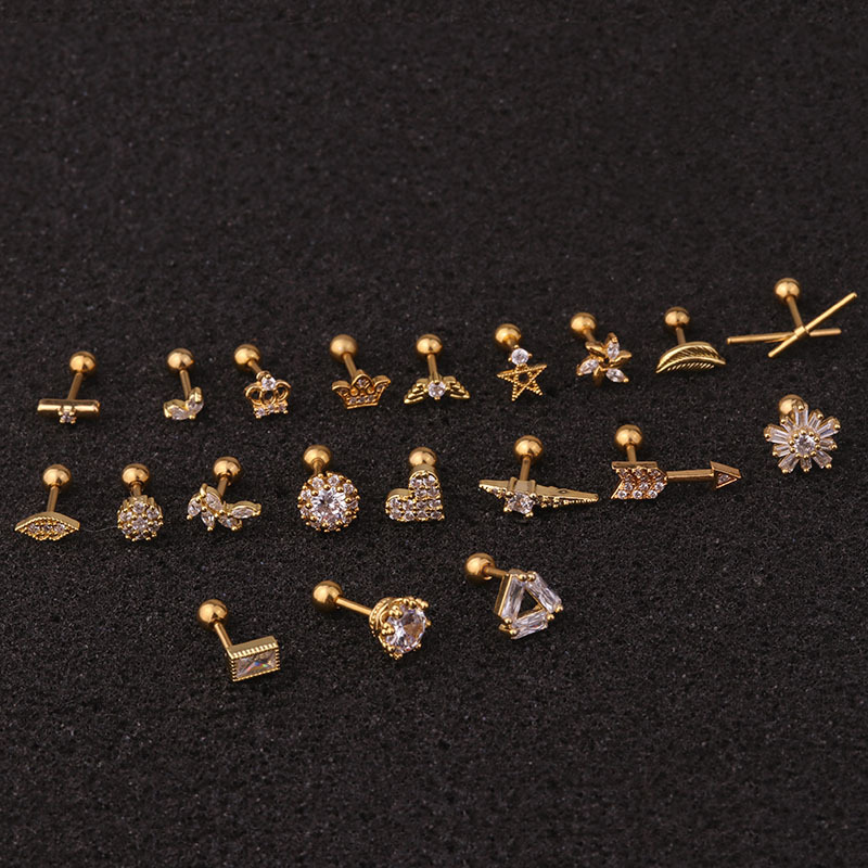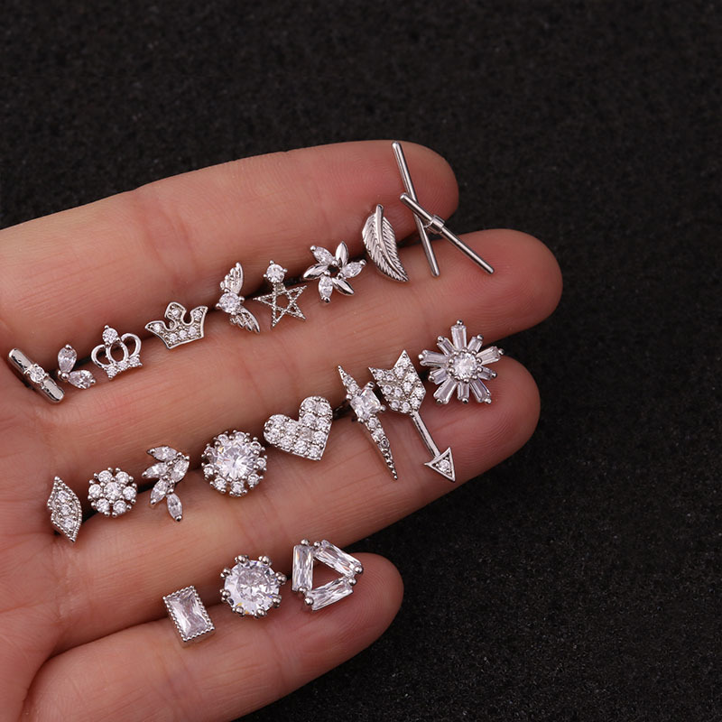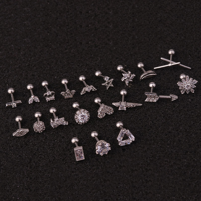 Creative Stainless Steel Ear Studs Inlaid with Zircon