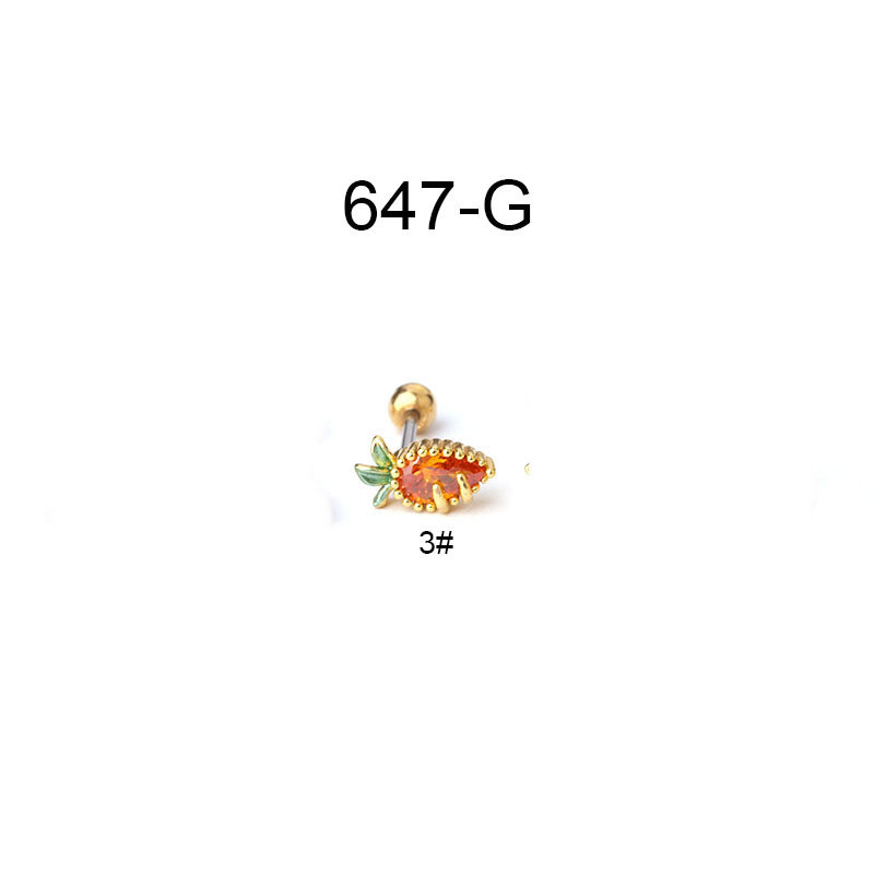 Creative Stainless Steel Thin Rod Fruit Zircon Stud Earrings