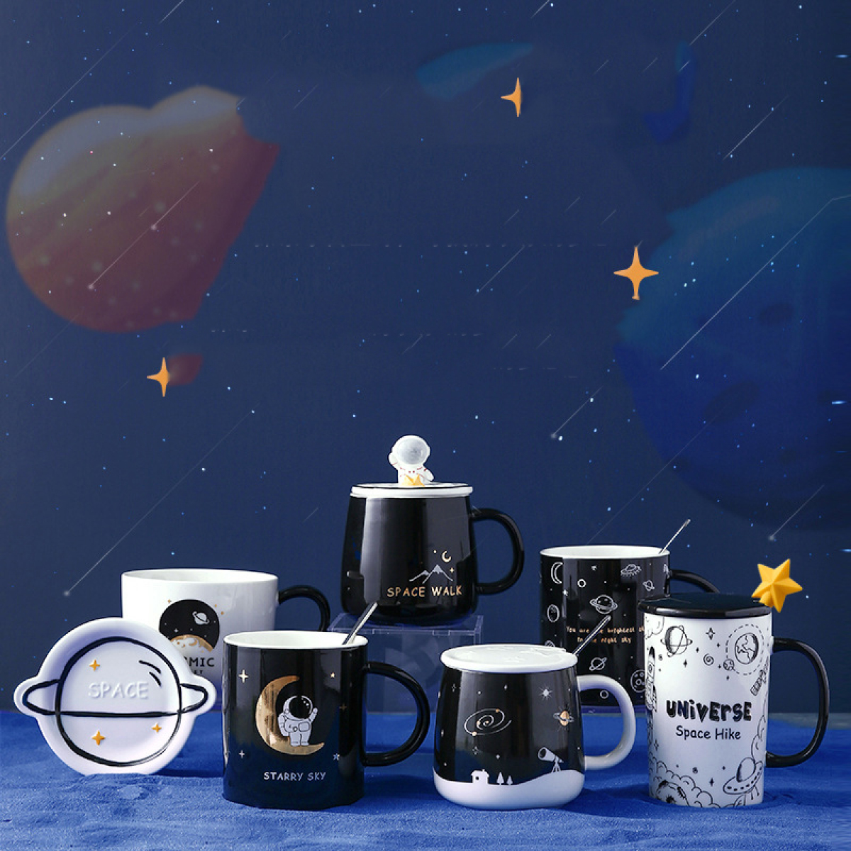 A171-A2-Starry sky single cup with spoon about 420ml about 470g