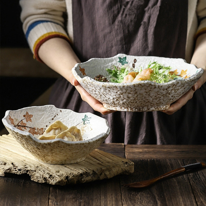 Color: 6-inch stone pattern multi-angle Bowl -- Retro Maple Leaf, 8-inch stone pattern multi-angle Bowl -- Retro Maple Leaf, 10-inch stone pattern multi-angle Bowl -- Retro Maple Leaf