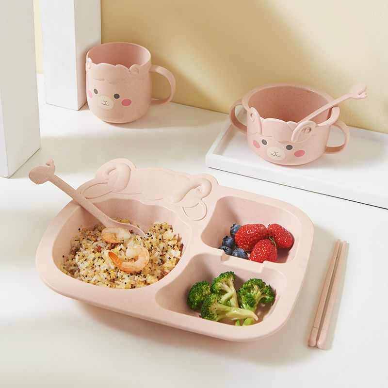 Color: A: pink sheep 4-piece set (including plate, spoon and fork chopsticks), B: dark green sheep 4-piece set (including plate, spoon and fork chopsticks), C: pink sheep 6-piece set (including plate, bowl) , Cup, spoon and fork chopsticks), D: dark green sheep 6-piece set (including plate, bowl, cup, spoon and fork chopsticks), E: pink dinosaur 4-piece set (including plate, spoon and fork chopsticks), F: ink Green dinosaur 4-piece set (including plate, spoon and fork chopsticks), G: pink dinosaur 6-piece set (including plate, cup, bowl, spoon, fork and chopsticks), H: dark green dinosaur 6-piece set (including plate, cup) , Bowl, spoon and fork chopsticks), I: 6-piece dark green mushroom set (including plate, cup, bowl, spoon and fork chopsticks), J: 6-piece moonlight yellow crab set (including plate, cup, bowl, spoon and fork chopsticks)