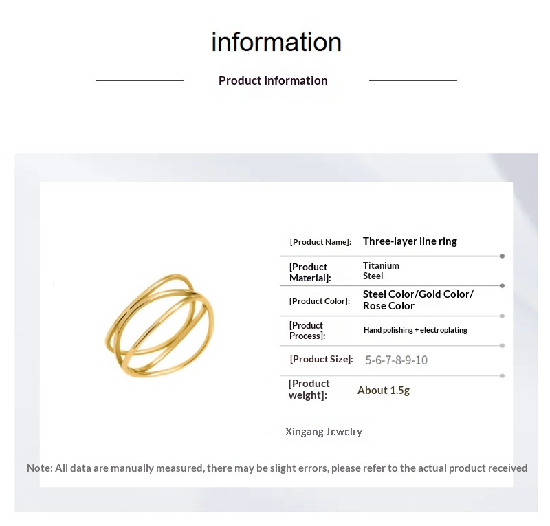 Colors: Steel-Color Three-Strand Ring, Gold-Color Three-Strand Ring, Rose-Gold Three-Strand Ring