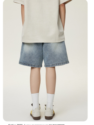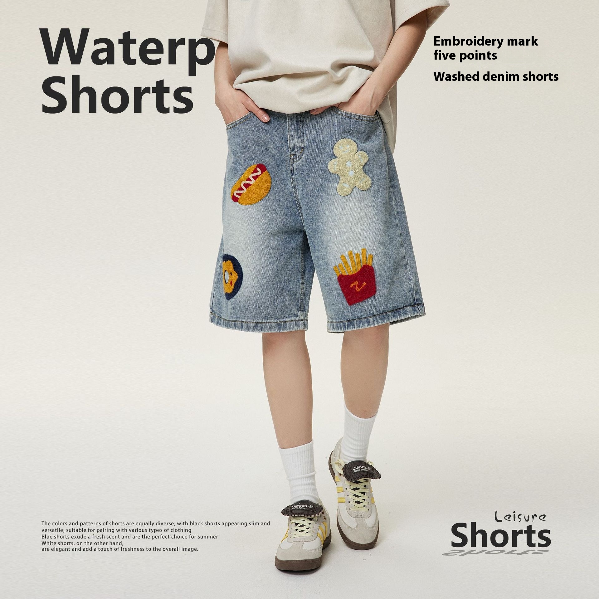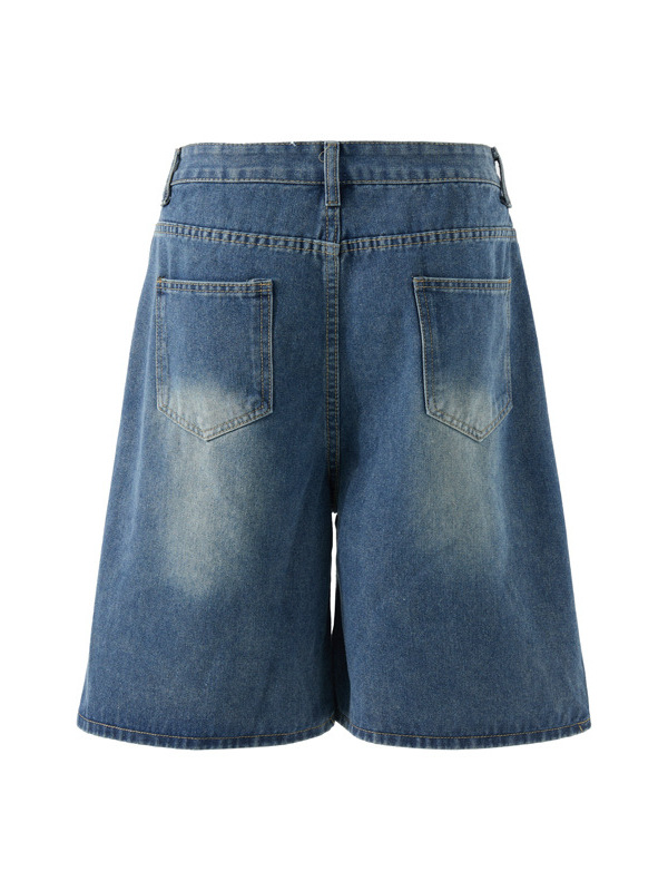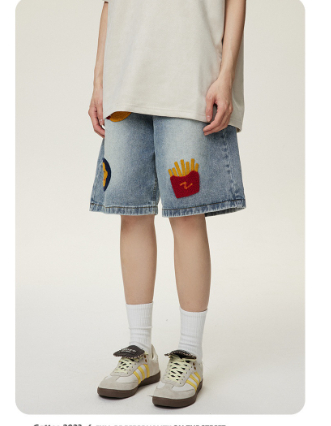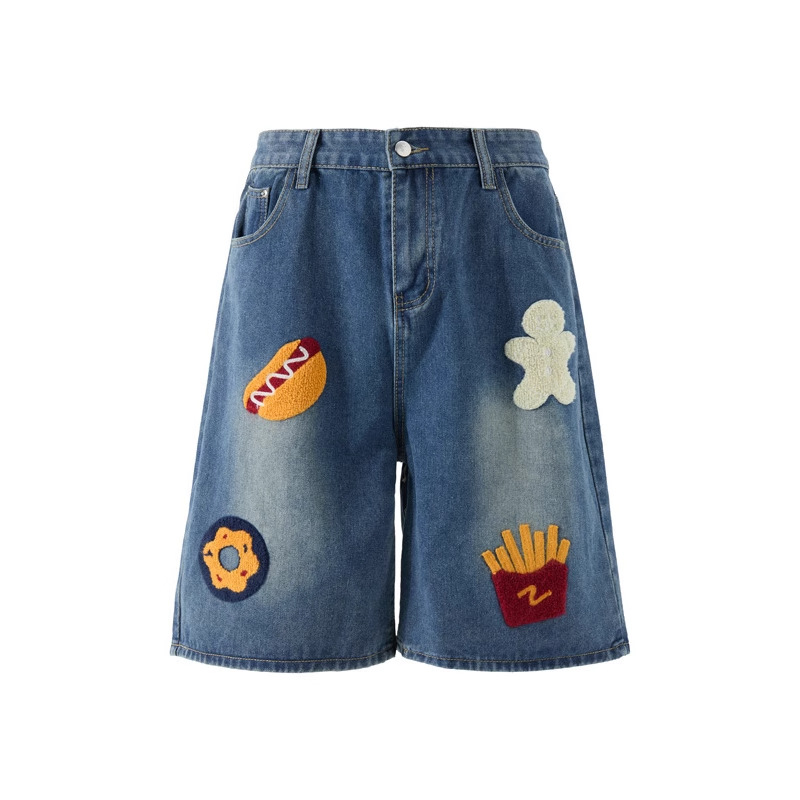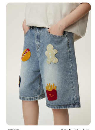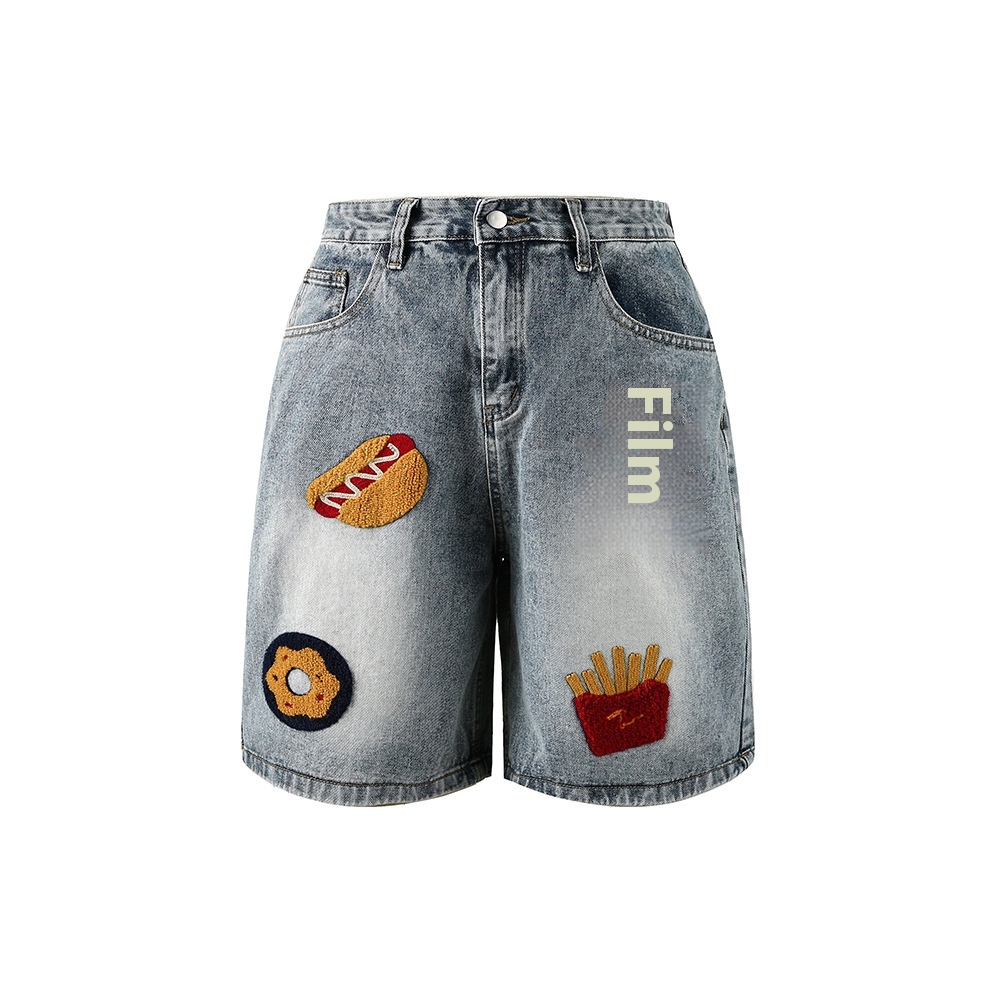 Creative Towel Embroidery Denim Shorts Male And Female Trendy Brand High Street Straight Shorts