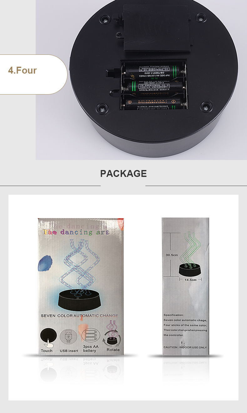 1. Dancing effect: Press the the button on the lamp base, the light turns on and rotates like dancing, creative and interesting.