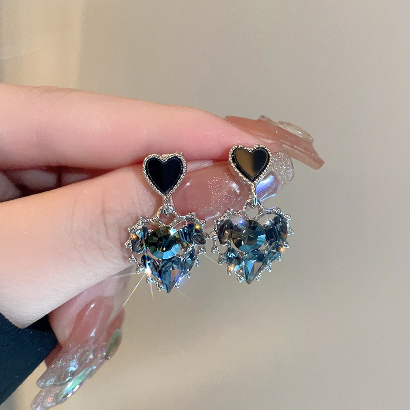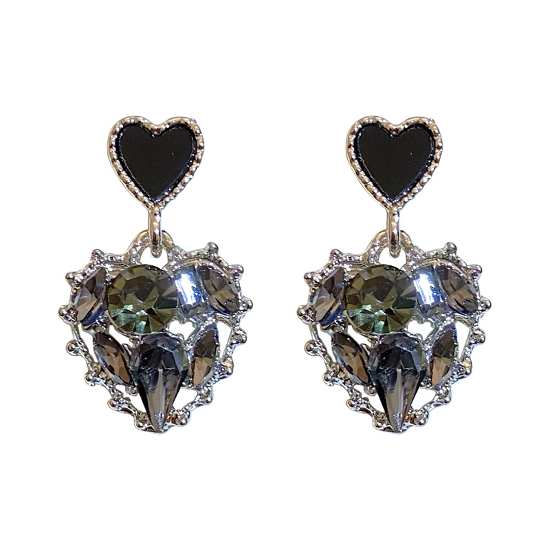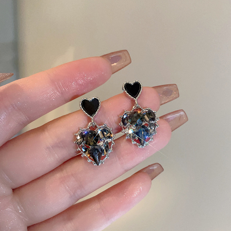 Color: Black Light Luxury Advanced Crystal Heart Ear Clips