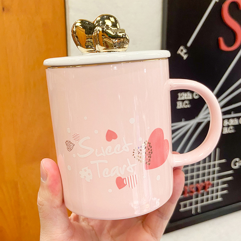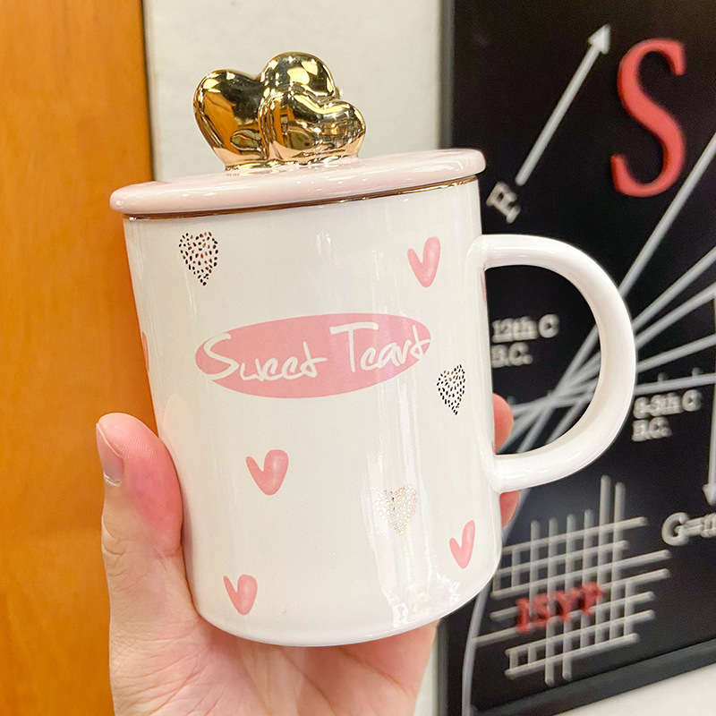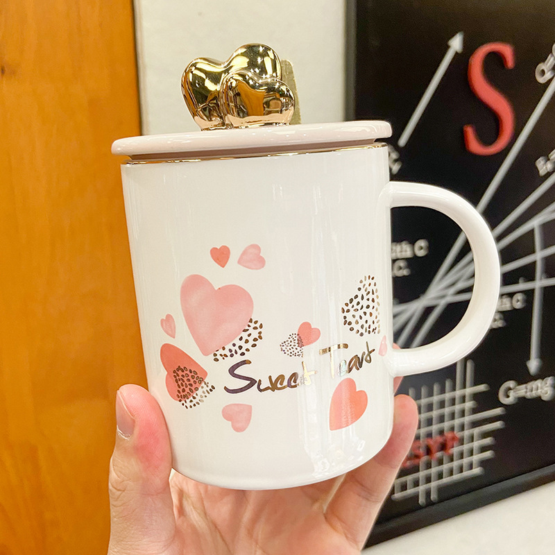Color: pink cup with a circle of peaches, white cup with white letters, pink cup with half peach heart, white cup with gold letters