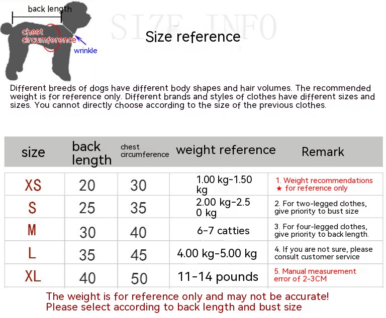 Dimensions: XS, S, M, L, XL