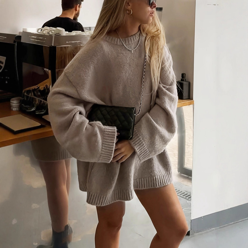 Crew-neck Fashionable Casual Loose-fit Knit Top