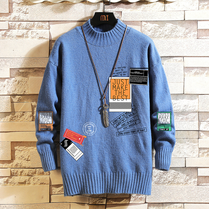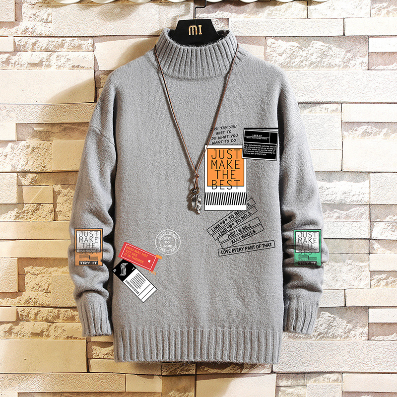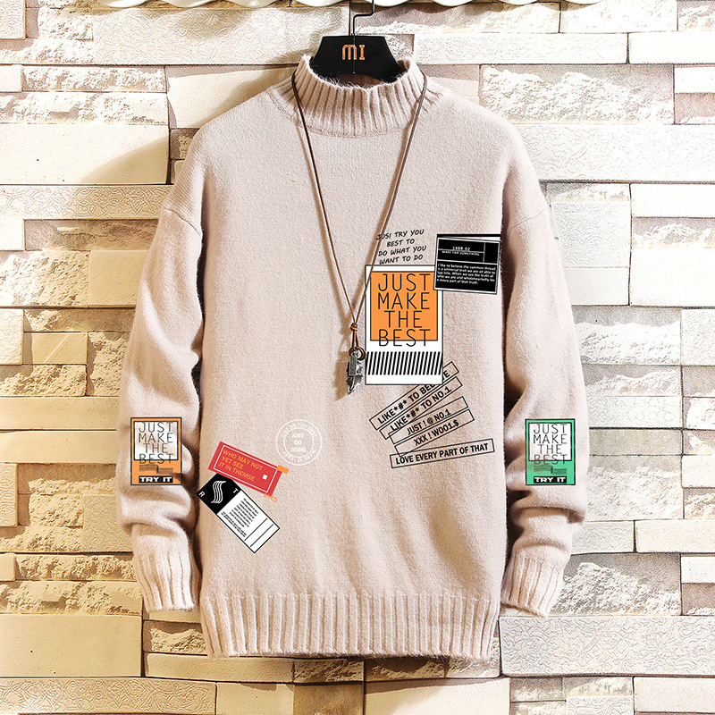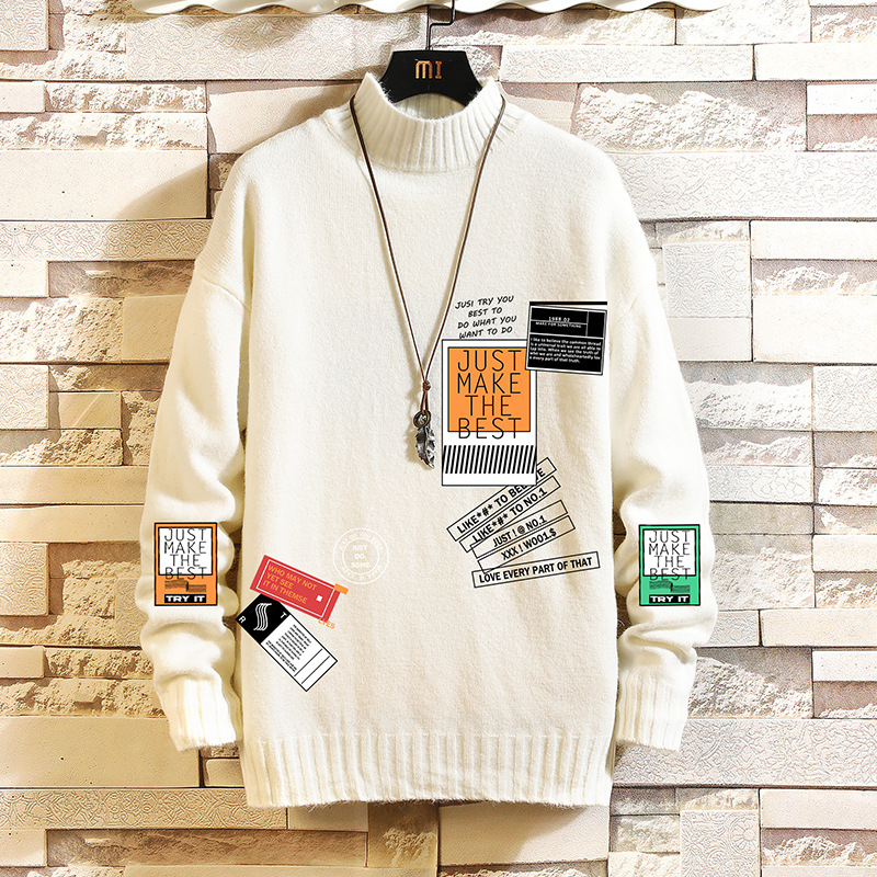 Crew Neck Men's Loose Winter Thickened White Sweater