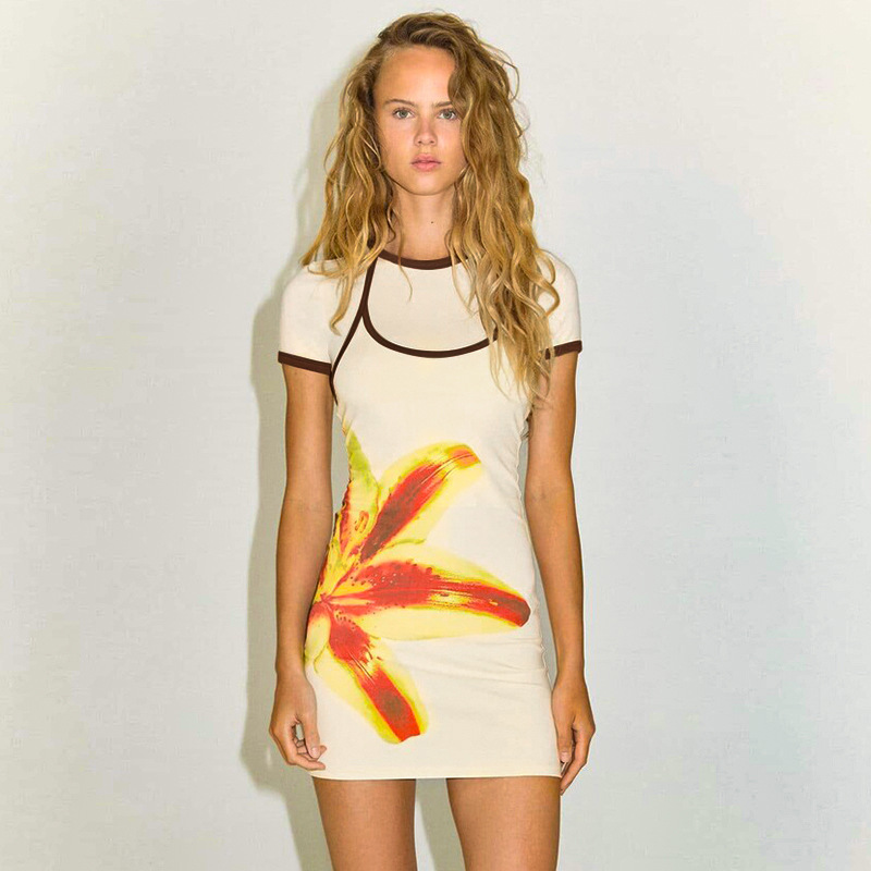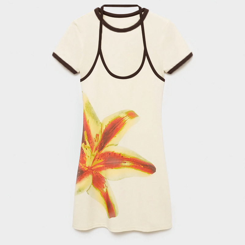 Crew-neck Short-sleeve Top And Form-fitting Strap Mini Dress Set