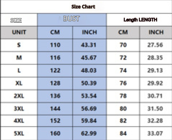 Sizes: S, M, L, XL, 2XL, 3XL, 4XL, 5XL
