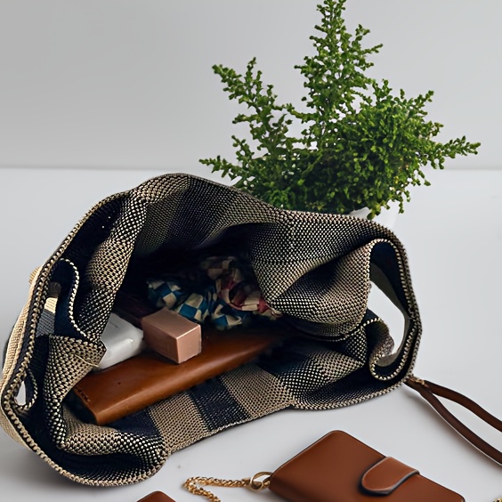 Crochet striped handbag multifunctional casual crossbody bag
