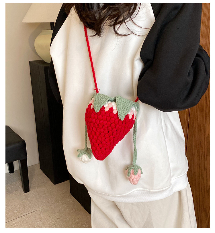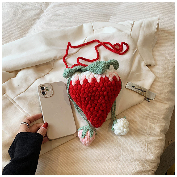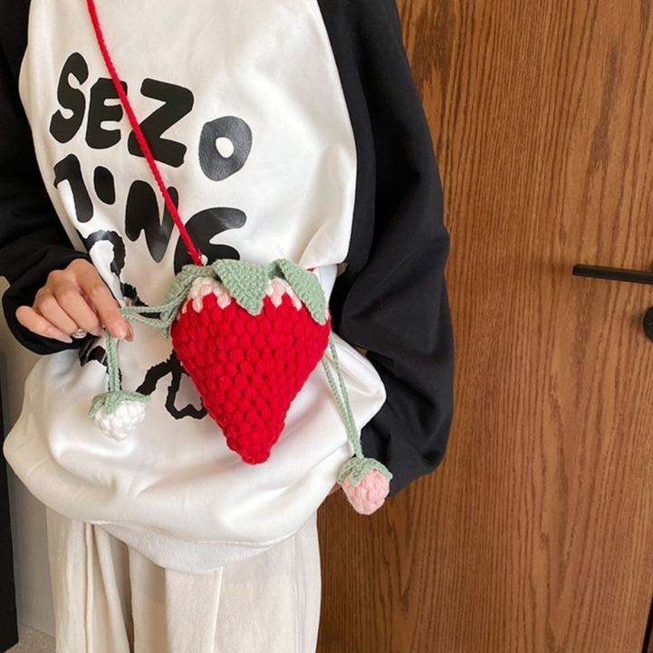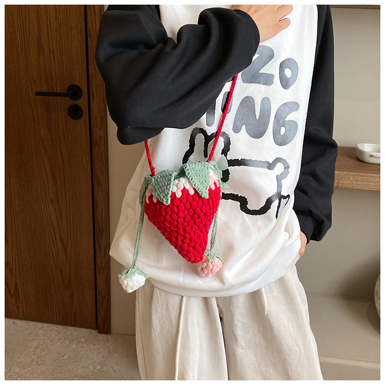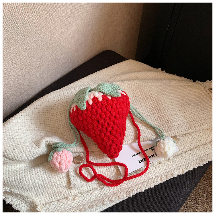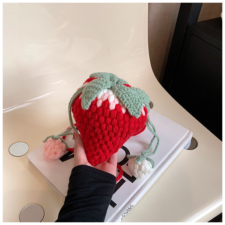 Crocheted Wool Strawberry Bag Cute